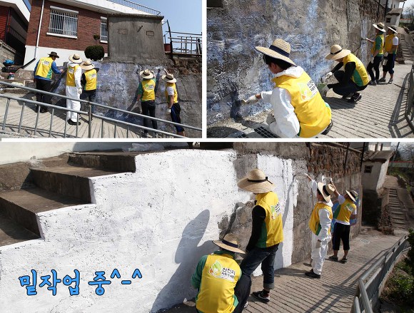 담벼락에 고운 옷을 입혀주고 있는 우리 봉사단!