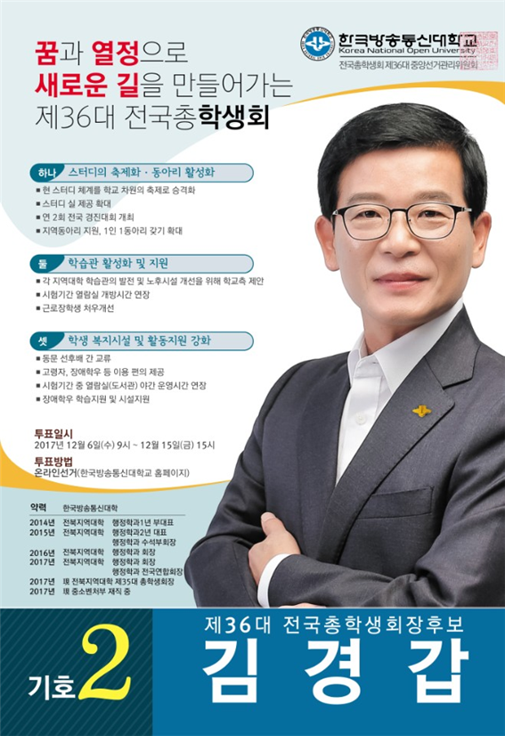 제36대전국총학생회장 후보 기호2번 김경갑 올림.