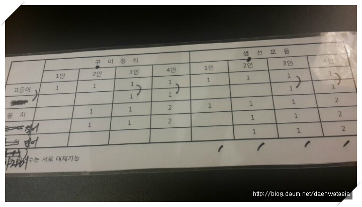 사장님에게 특별히 메뉴구성을 보여 달라고 해서