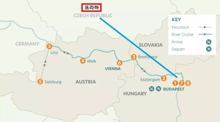 | 불포함사항 Ø 국제선 항공료 Ø 프라하 투어의 경우 식사시 주류 및 음료 Ø 크루즈 선상 팁(€12 / 1일/ 1인) 및 공동경비 (€10 / 1일/ 1인) : 현지 가이드, 기사, 공동경비 등 Ø 포트리지 서비스 Ø 여행자보험 Ø 포함사항에 포함되지 않은 경비 및 기타 개인 경비 |