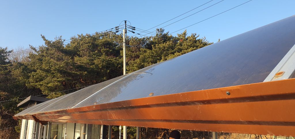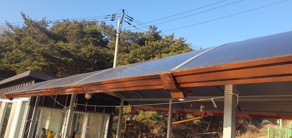 멋스러움 때문에 렉산 마감 선 자리에 물받이를 하지 않았더니