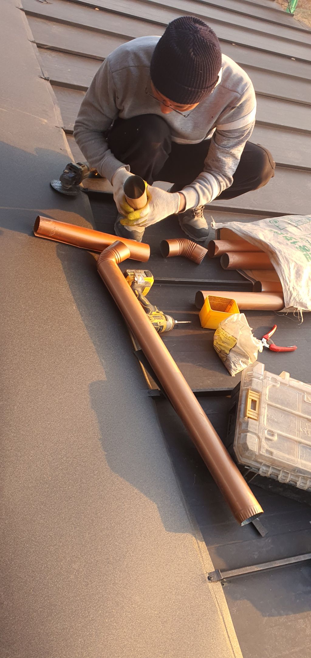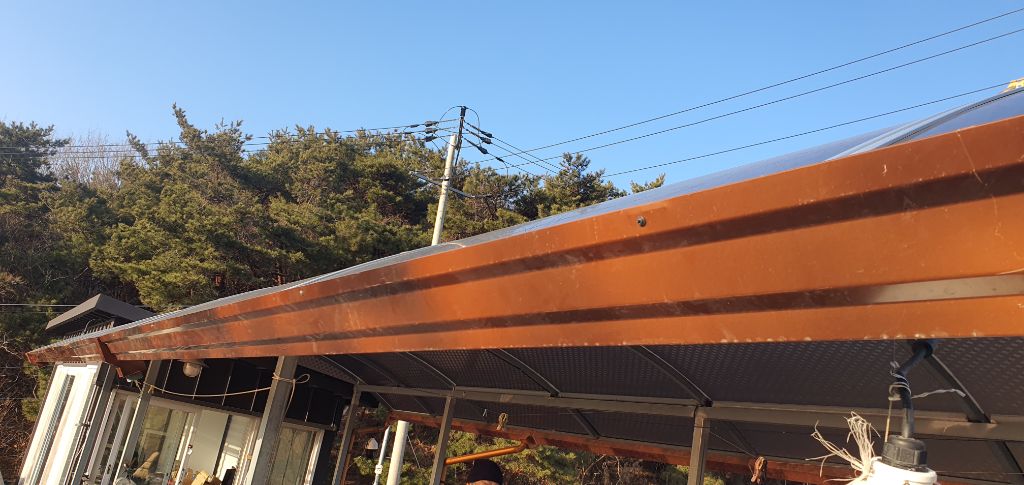 불편한 점을 해소하려고 렉산 양쪽에 동판 칼라에 물받이를 시공합니다