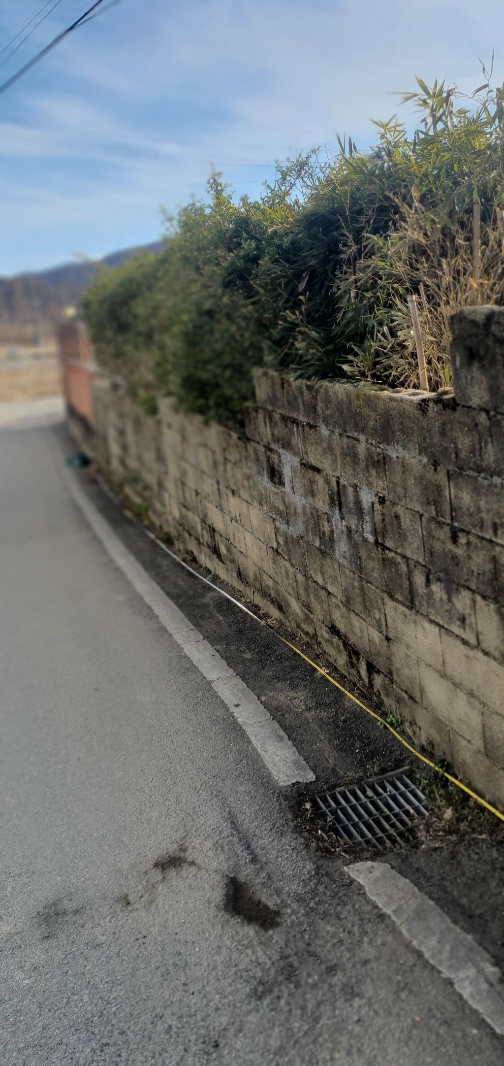 차량이 다니는 쪽으로 담장이 기울어서