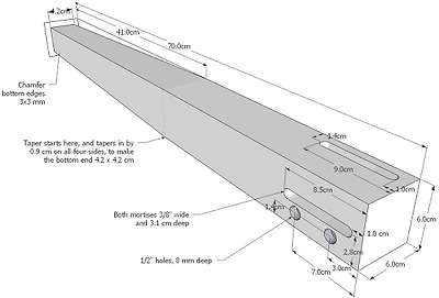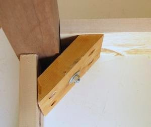 보강목을 대는 방식의 다른 문제점은 다리에 정확하게 45도로 구멍을 내야 한다는 점입니다. 설사 드릴프레스가 있다고 할지라도 45도로 정확히 드릴링하는 것은 매우 어렵습니다. 만약 다리에 삐뚤게 구멍을 냈다면 볼트로 죄었을 때 양쪽으로 균일한 힘으로 압착이 되지 않아 내구성에 문제가 생깁니다.