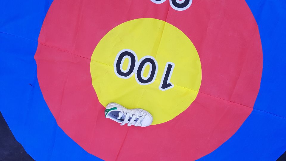 우리 현다빈 친구가 나타나 100점안에 정확히 신발을 던져 넣었습니다. 다빈이는 놀이기구 , 물놀이, 이제는 신발던지기 게임까지 모두 강했습니다.