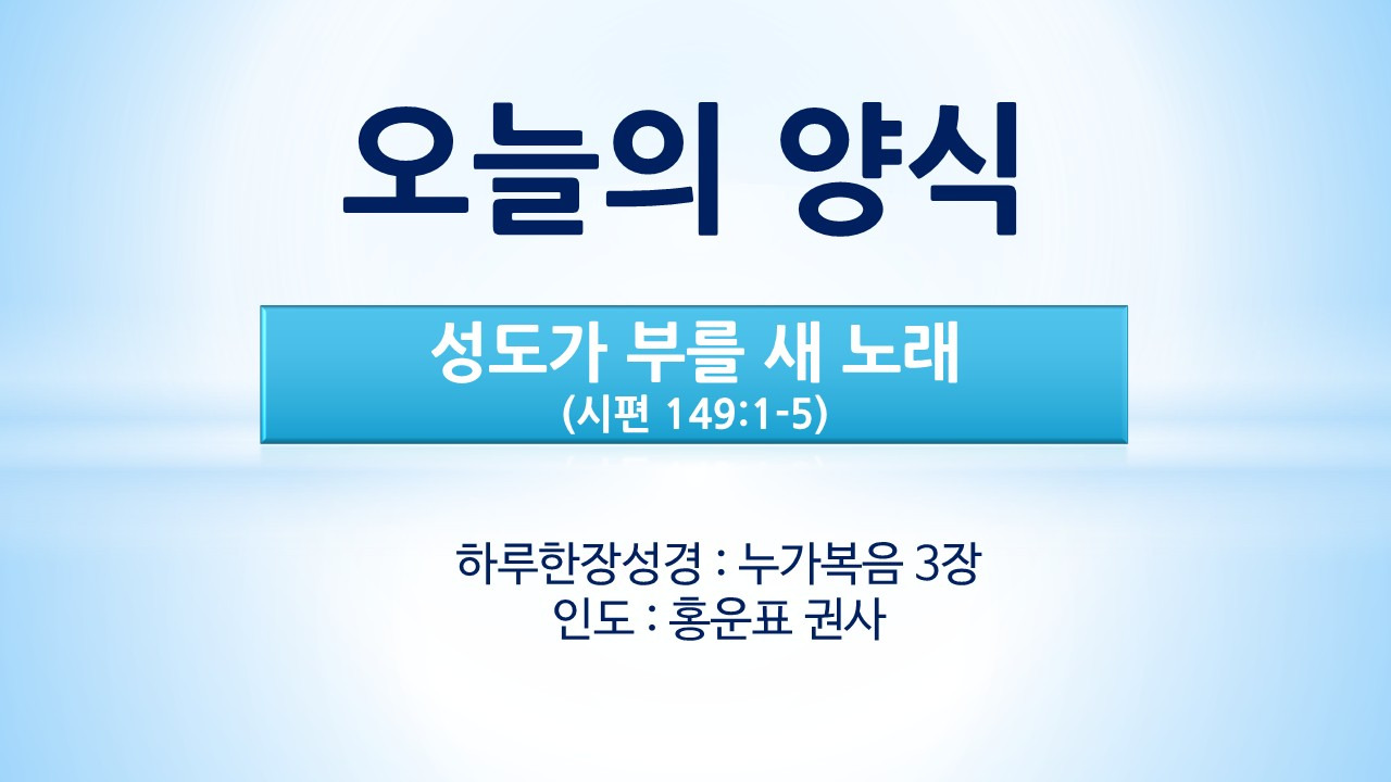 1월 3일 오늘의 양식 작성자손기찬|작성시간26.01.02|조회수133 목록 댓글 4 글자크기 작게가 글자크기 크게가 다음검색 현재 게시글 추가 기능 열기 북마크 공유하기 신고 센터로 신고 댓글 댓글 4 댓글쓰기 답글쓰기 댓글 리스트 작성자핑크와별이 | 작성시간 26.01.03 아멘 고맙습니다 🙏 작성자유영종 | 작성시간 26.01.03 홍운표권사님께서정성으로 인도해주신"오늘의 양식" 큰 은혜입니다.새로운 시간에 주님과 함께새로운 노래를 힘차게 불러야겠습니다. ^^ 작성자노지숙 | 작성시간 26.01.03 아멘 작성자박상권 | 작성시간 26.01.03 아멘 댓글 전체보기