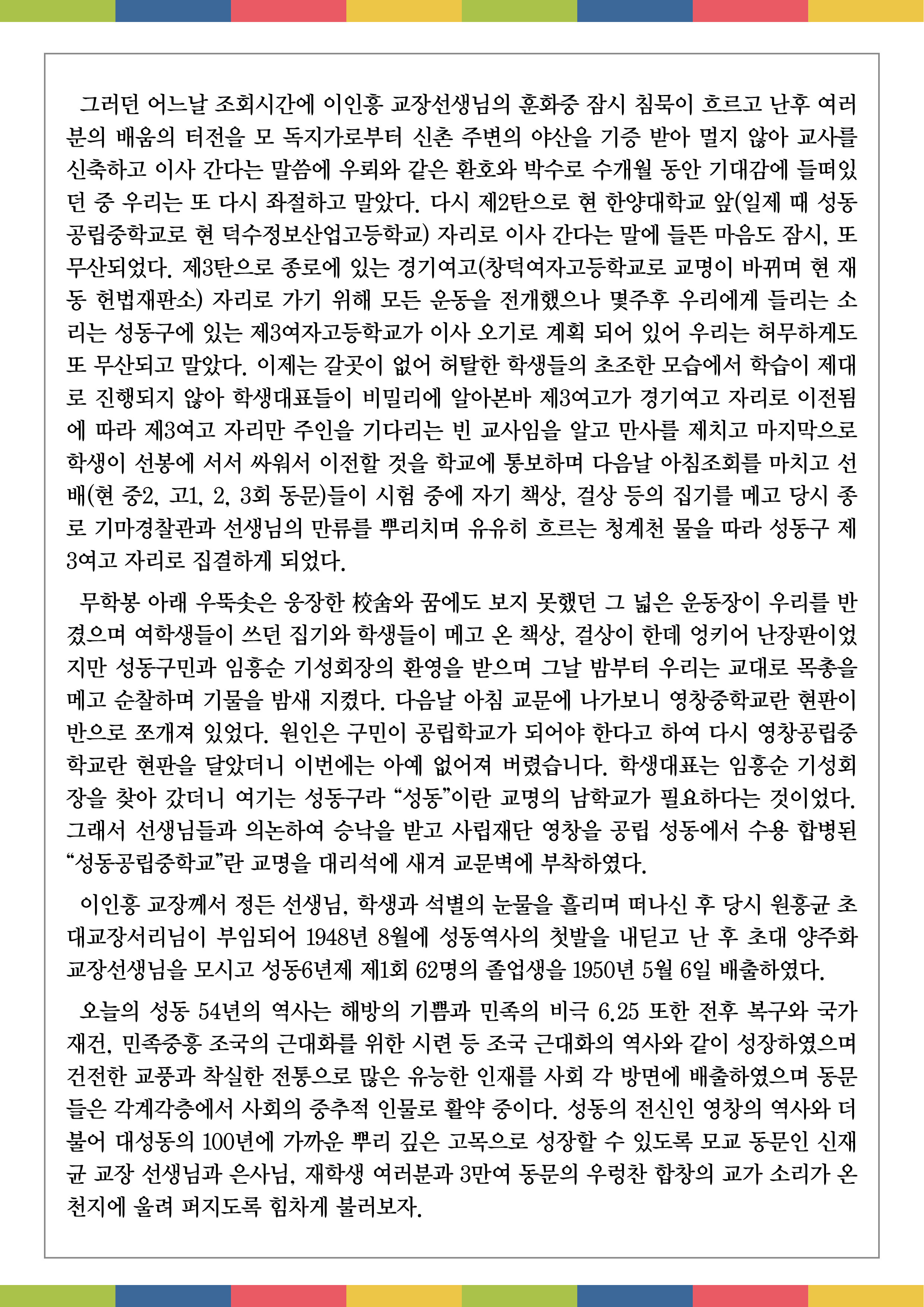 성동고등학교 뿌리(탄생)이야기 작성자오천한승옥|작성시간20.06.29|조회수421 목록 댓글 0 글자크기 작게가 글자크기 크게가 성동중 1회 양재육 선배가 회고하는 성동고등학교의 탄생 이야기는 성동인 모두가 정확히 알아야겠기에 총동문회보에 실린 이야기를 전재하여 알려드립니다. 다음검색 현재 게시글 추가 기능 열기 북마크 공유하기 신고 센터로 신고 댓글 댓글 0 댓글쓰기 답글쓰기 댓글 리스트