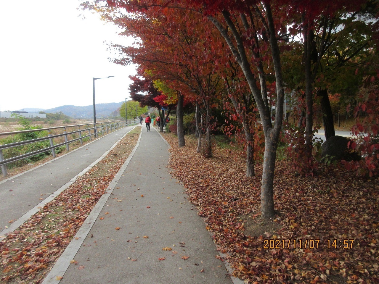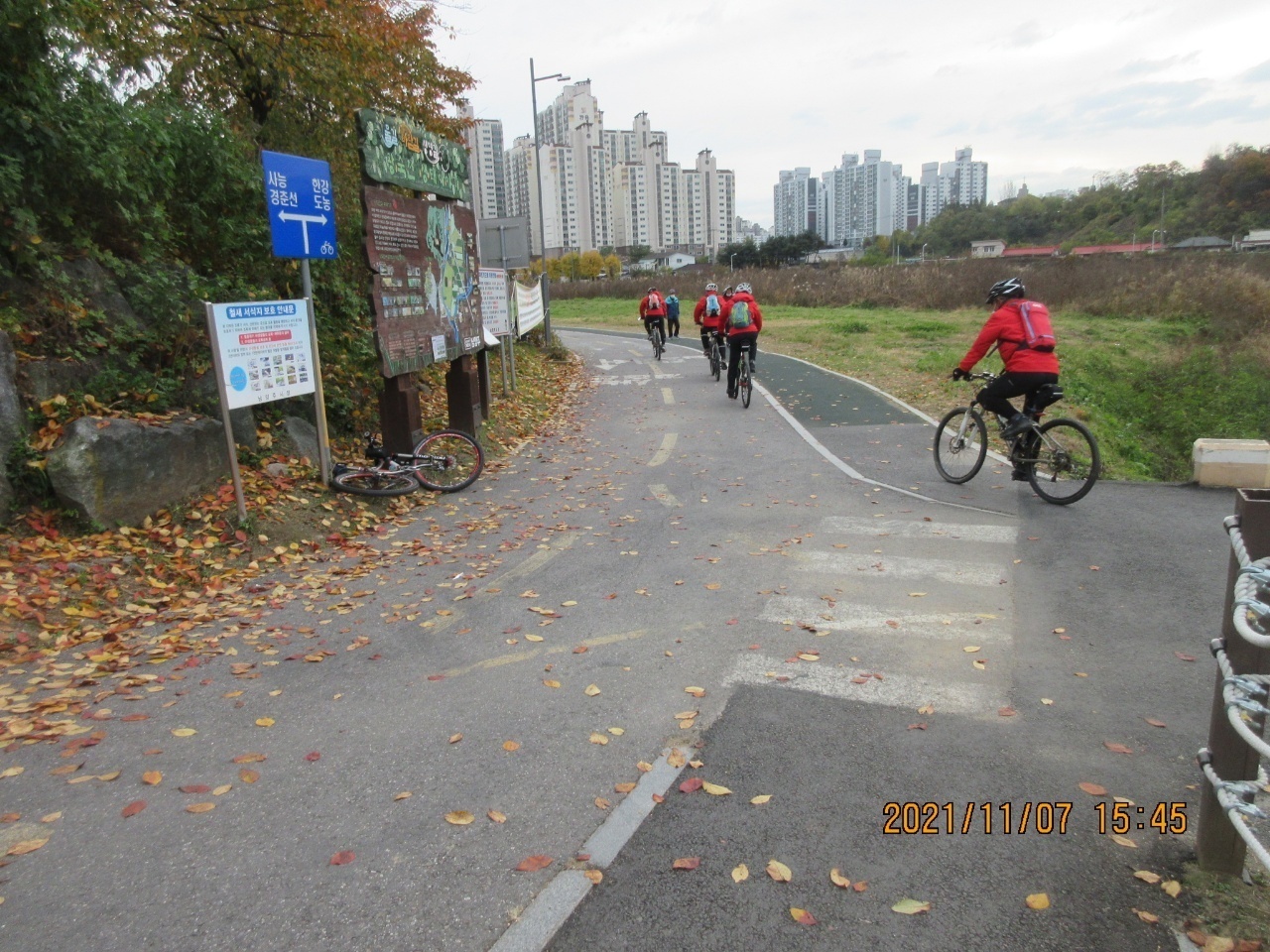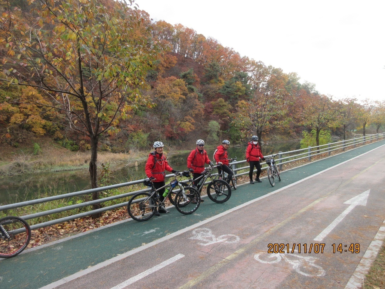 왕숙천 자전거길에서 단풍을 배경으로 인증샷