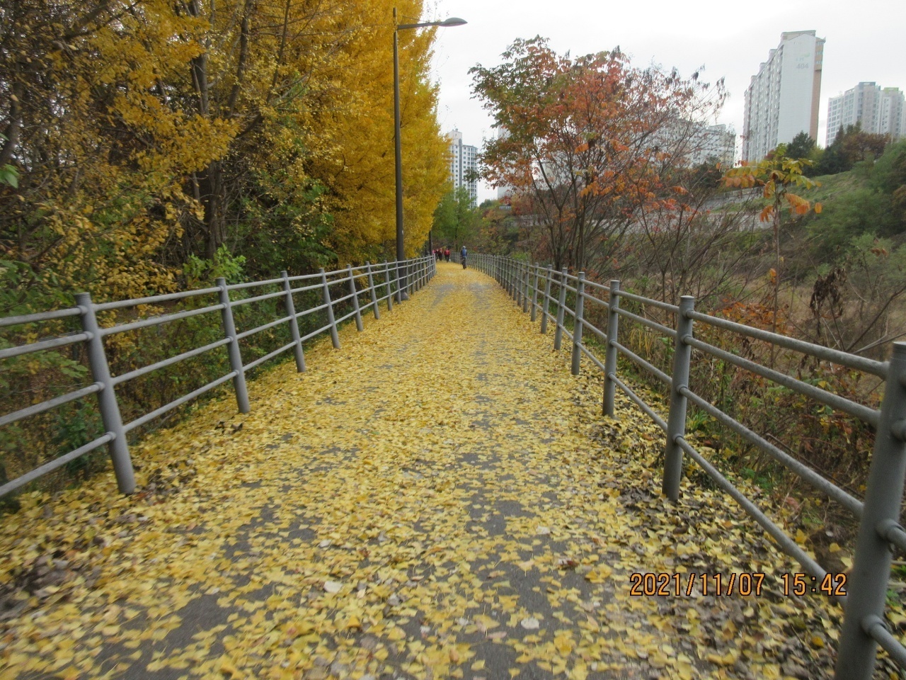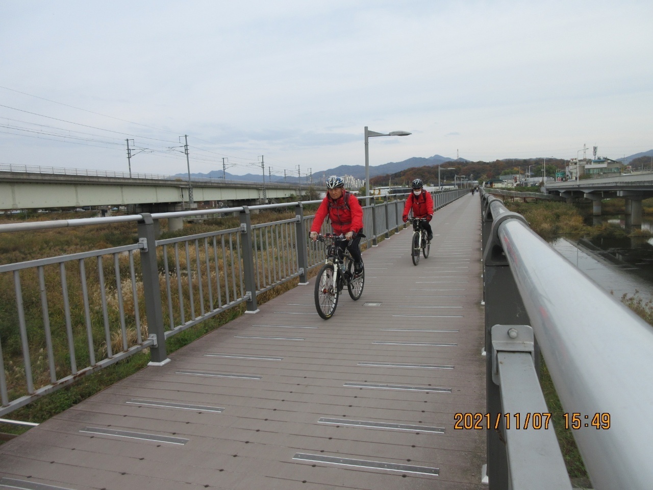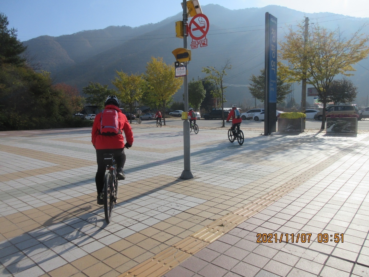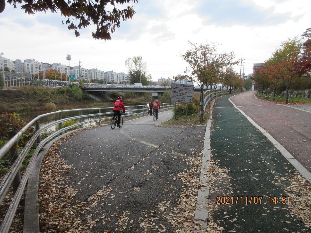 왕숙천 자전거길에서 단풍을 배경으로 인증샷