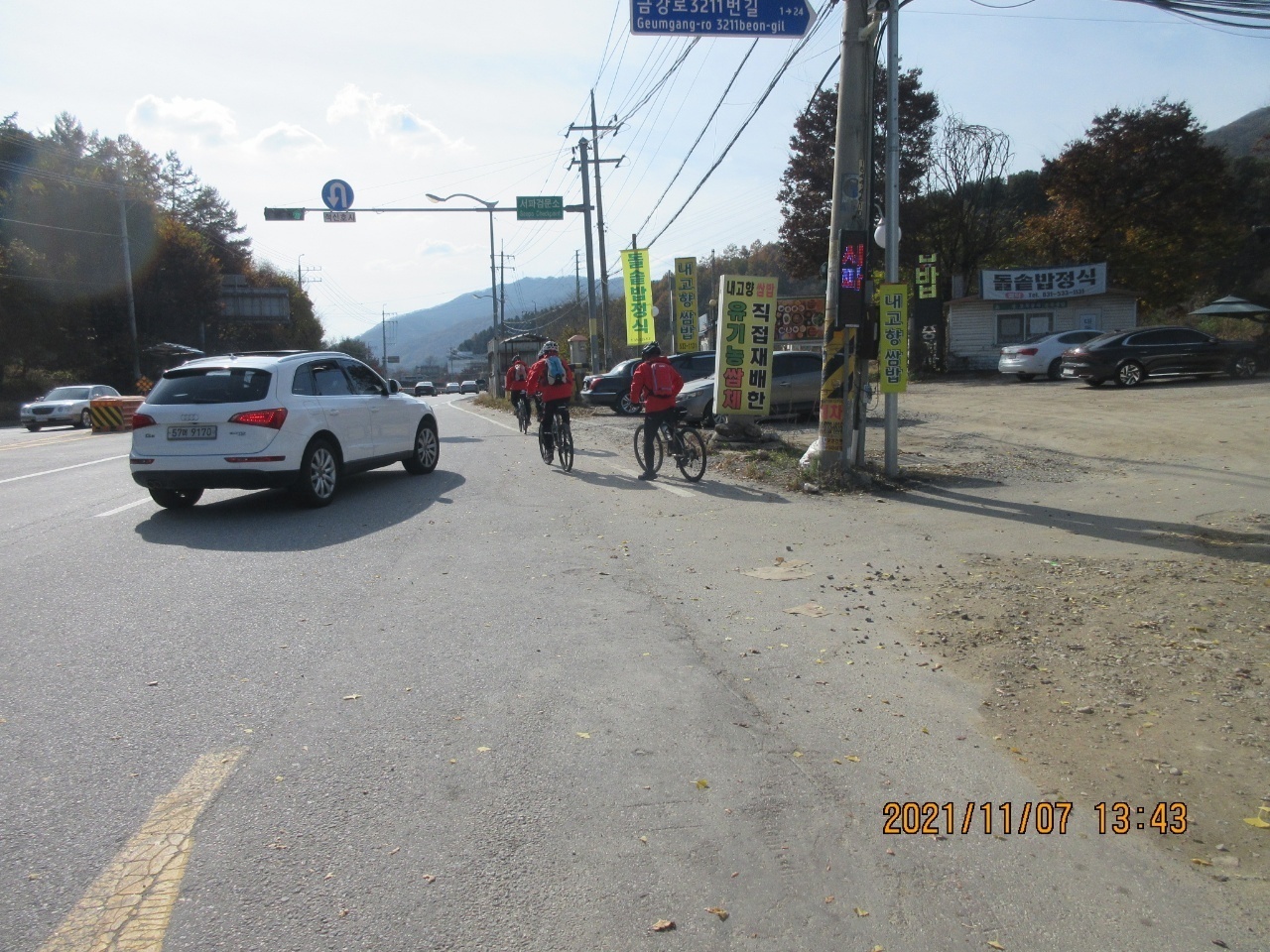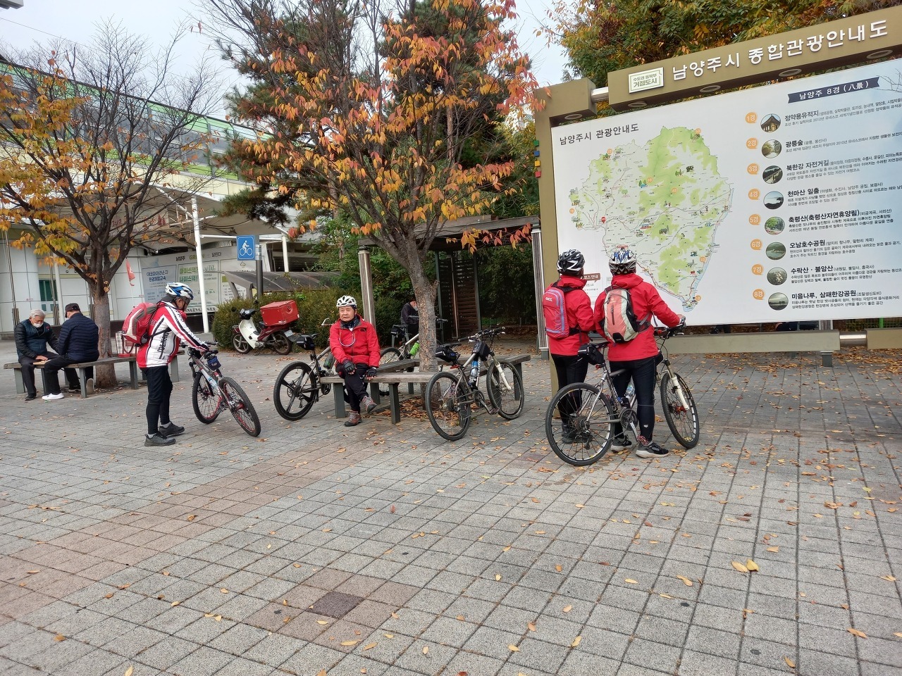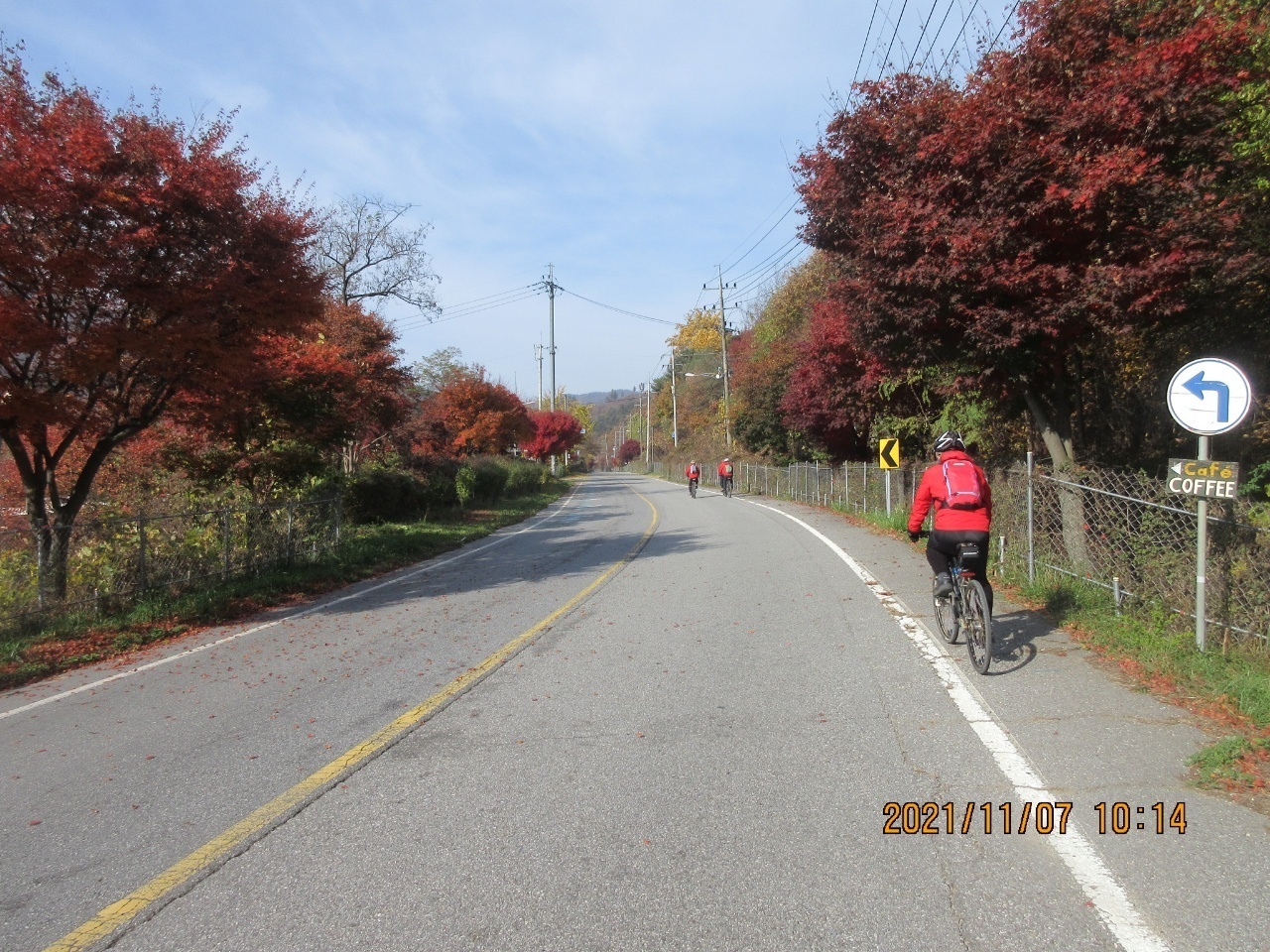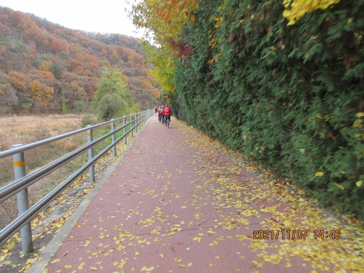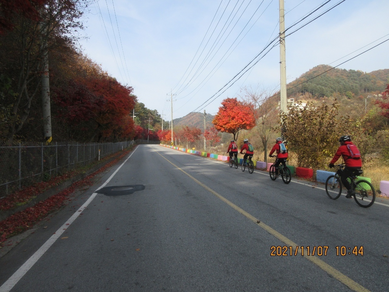 거리에는 단풍잎들이 우수수 떨어져 쓸쓸한 가을 분위기를 느낄 수 있었다. 이번 여정은 가을 풍경의 안구정화로 지루할 틈이 없었으며. 경사 5도이내로 페달링도 한결 가벼웠다. 바이크 손대장은 편안하고 여유롭게 가을 풍광을 감상하면서 즐긴 즐거운 여행이었다고 술회하였다. 회원들은 모두 행복한 표정이었다. 쉐도우수는 사진촬영하는라 바쁘게 움직였다. 라이딩 도중에 사진을 찍는다는 것은 보통일이 아니다. 스머프 차는 쉐도우수 덕분에 편안하게 라이딩에 열중할 수 있었다. 쉐도우수에게 고마움을 전한다. 그리고 시종일관 안전하게 안내해준 람보림에게 찬사를 보낸다.