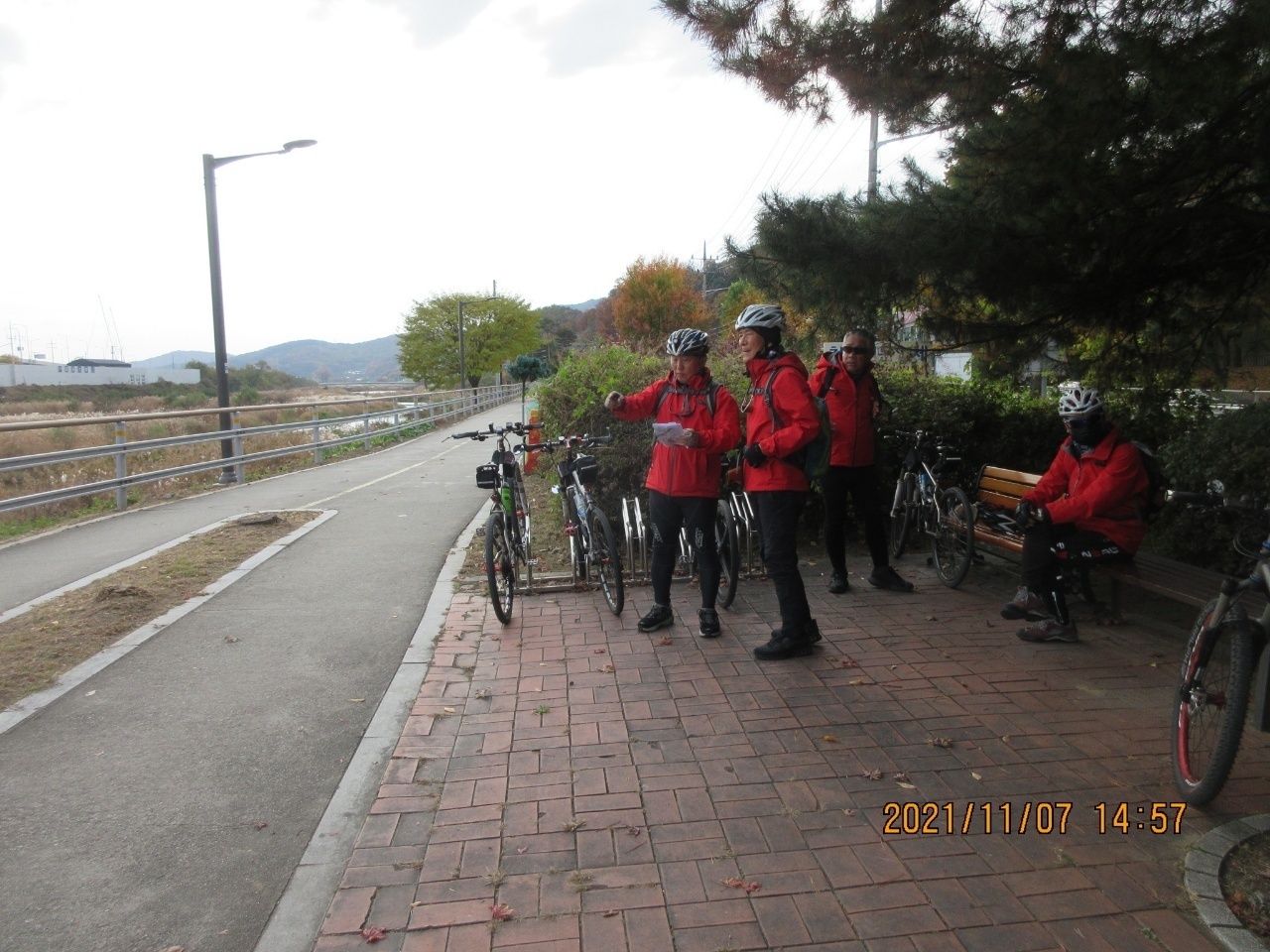 왕숙천 자전거길 쉼터에서 휴식