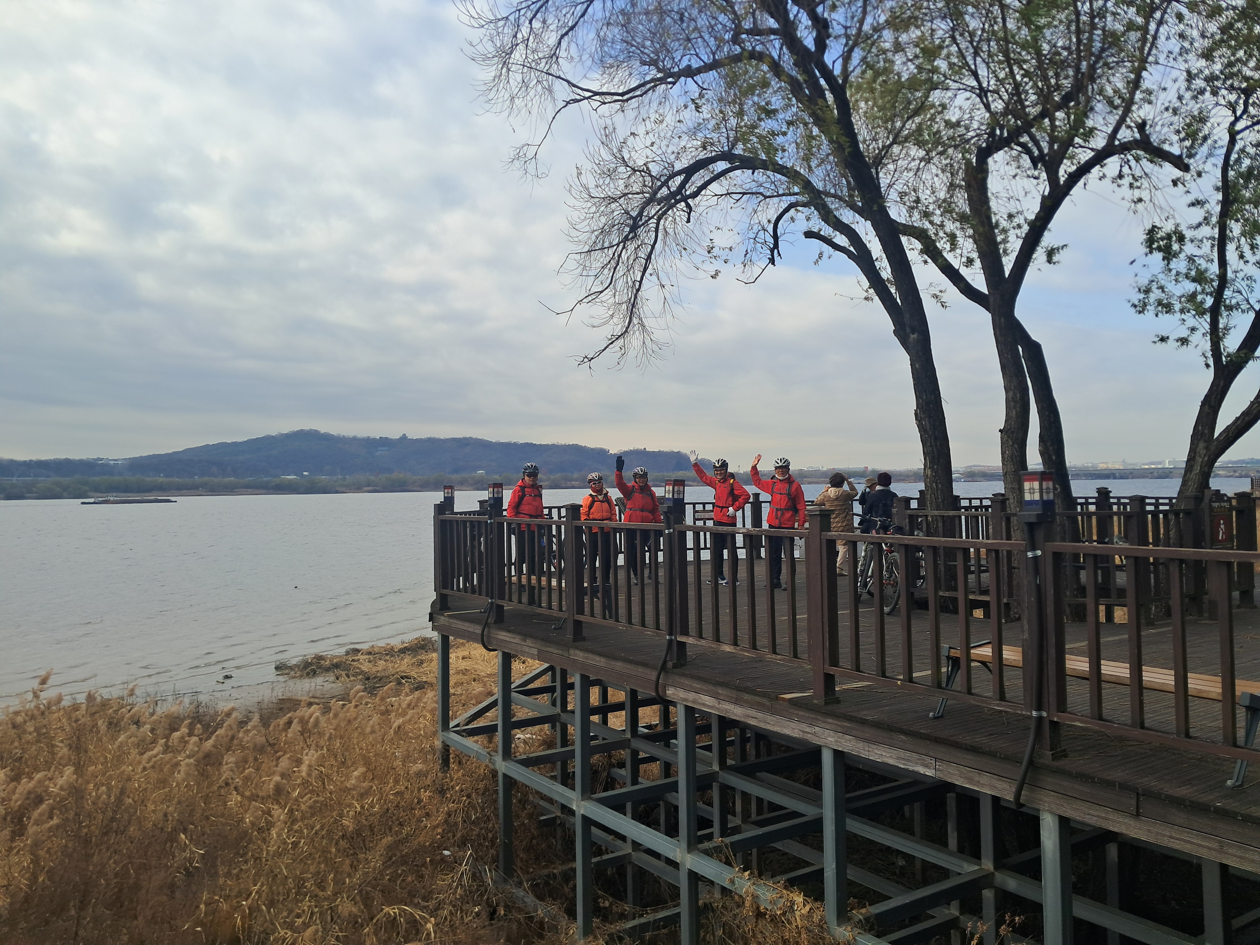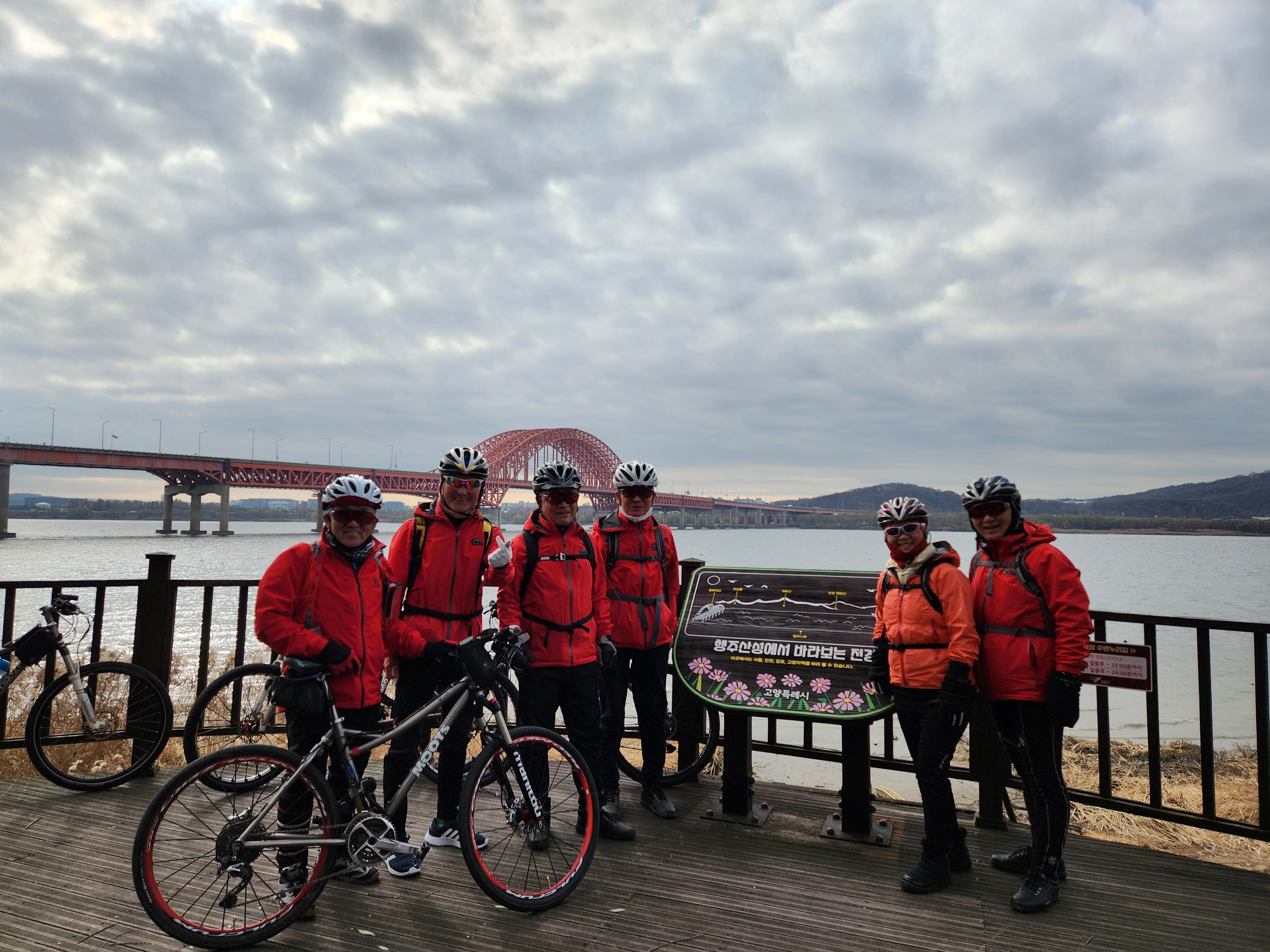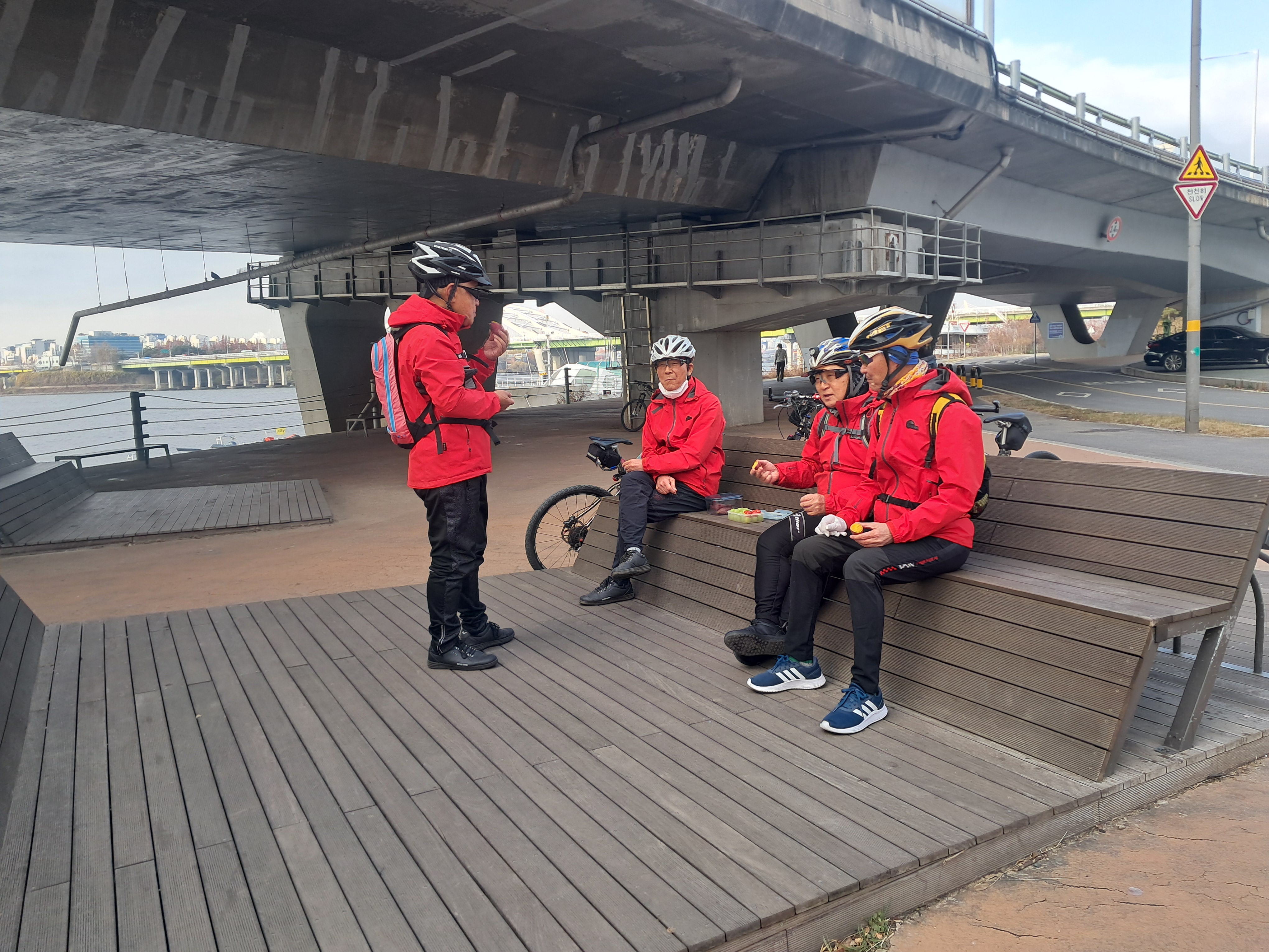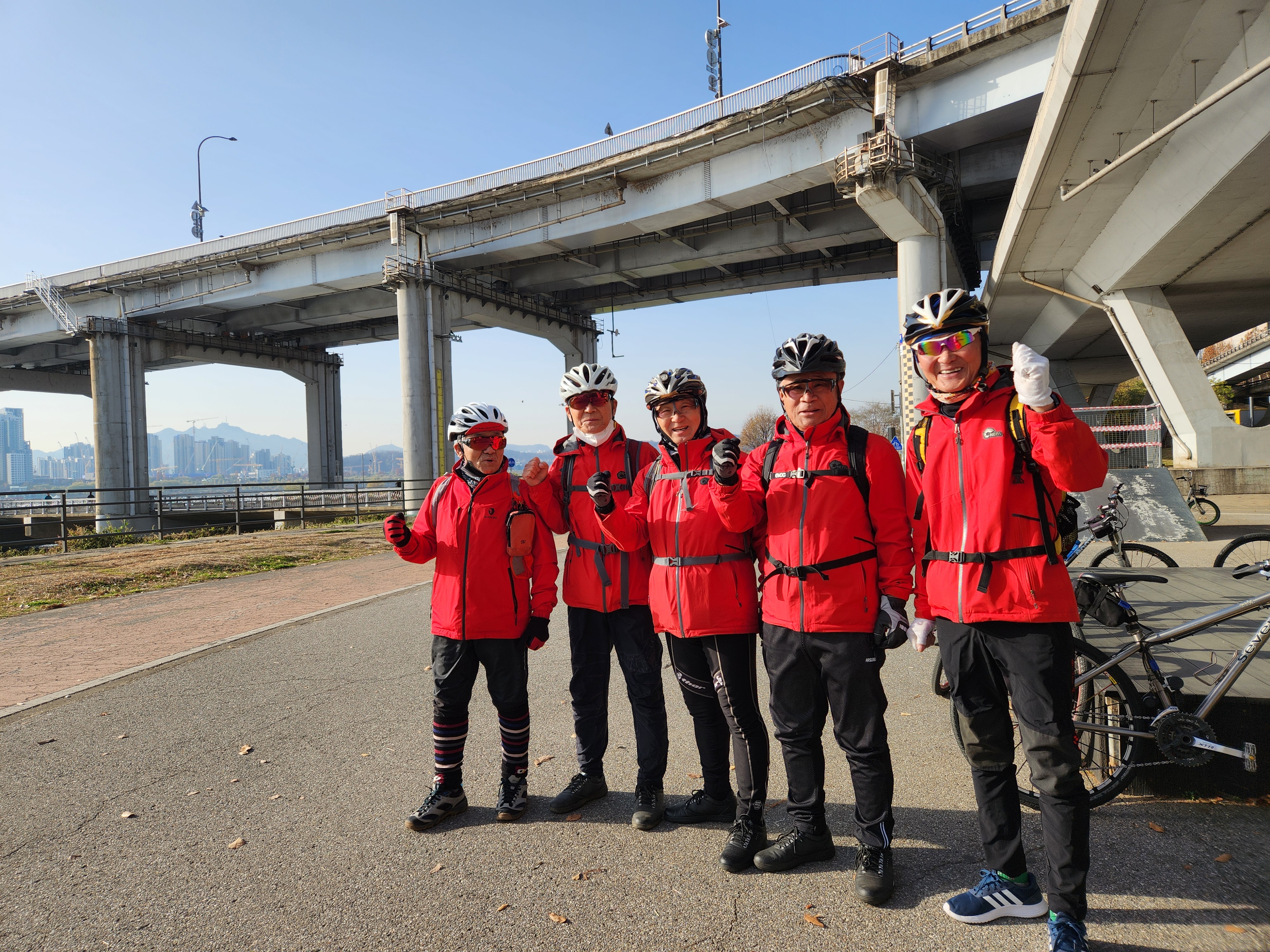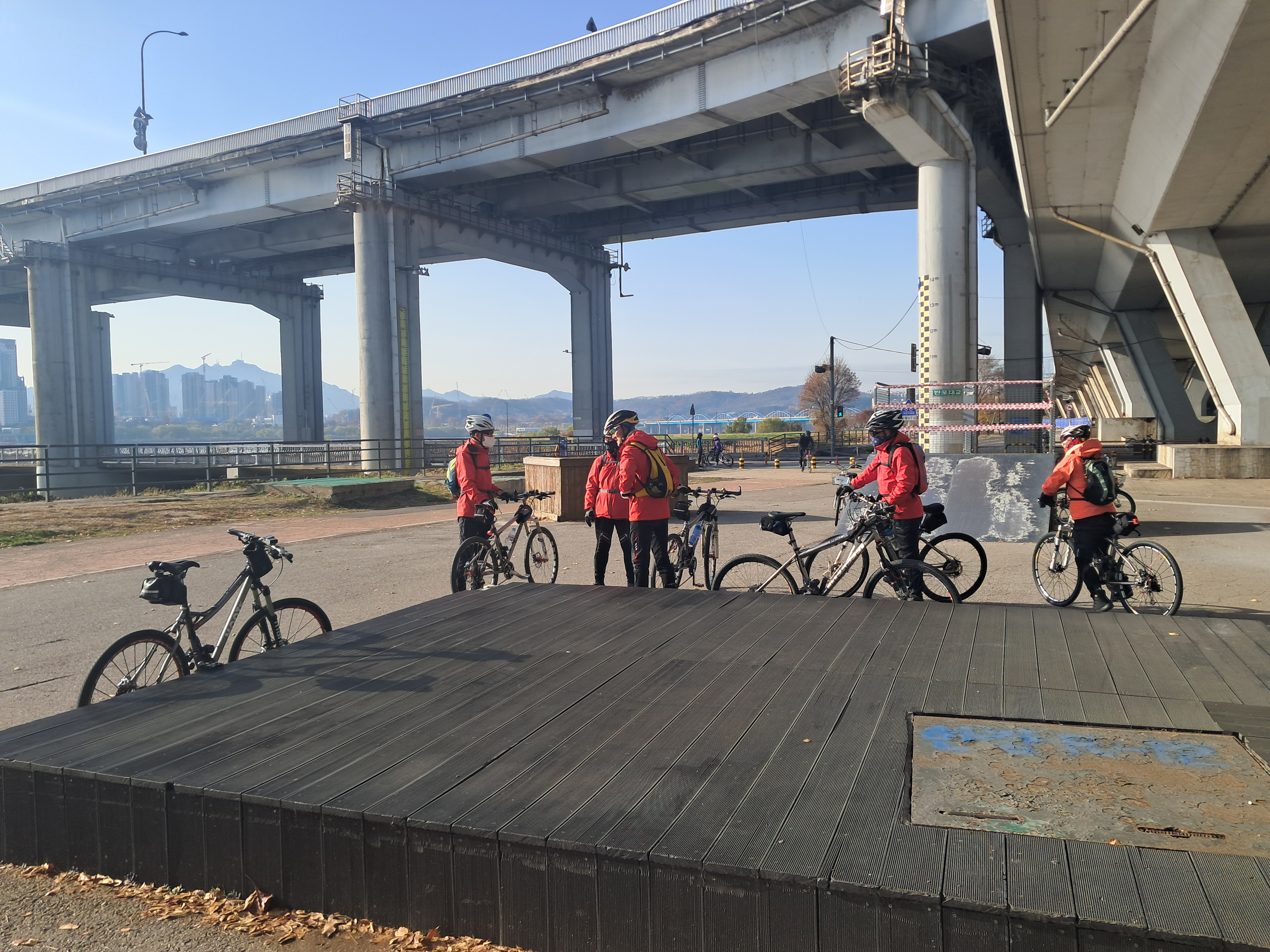 정서적인 유대감과 소속감으로 똘똘 뭉친 바이콜 전사들이 모처럼 모두 합류하여 기쁨을 감출 수 없었다. 반갑게 인사 나누고 한강대교 방향으로 향한다. 서울은 산과 강으로 둘러싸인 과거와 현재가 공존하는 역사 문화도시이기도 하다. 도시를 흐르는 강 중에 폭이 1km가 넘는 강은 세계적으로도 보기 드물다. 한강은 서울 면적의 6-7% 비율을 차지하는 최고의 힐링장소이자 테마파크다. 한강은 젊은 세대뿐만 아니라 외국인들도 즐겨 찾는 서울의 명소로 자리매김하였으며 보는 즐거움에서 즐기는 재미로 바뀌고 있다. 수상스포츠를 즐기는 사람들이 요즘 부쩍 늘었다.