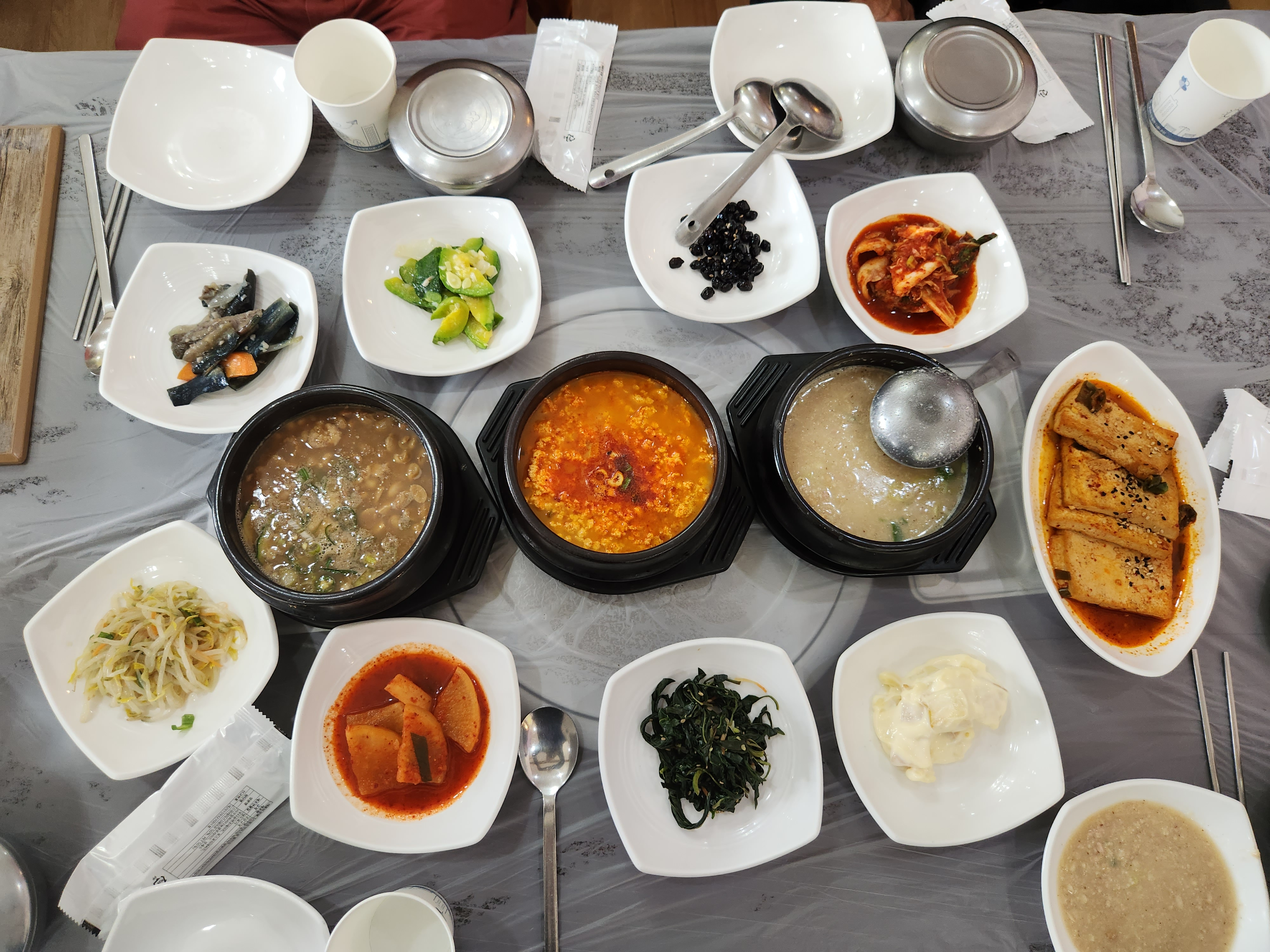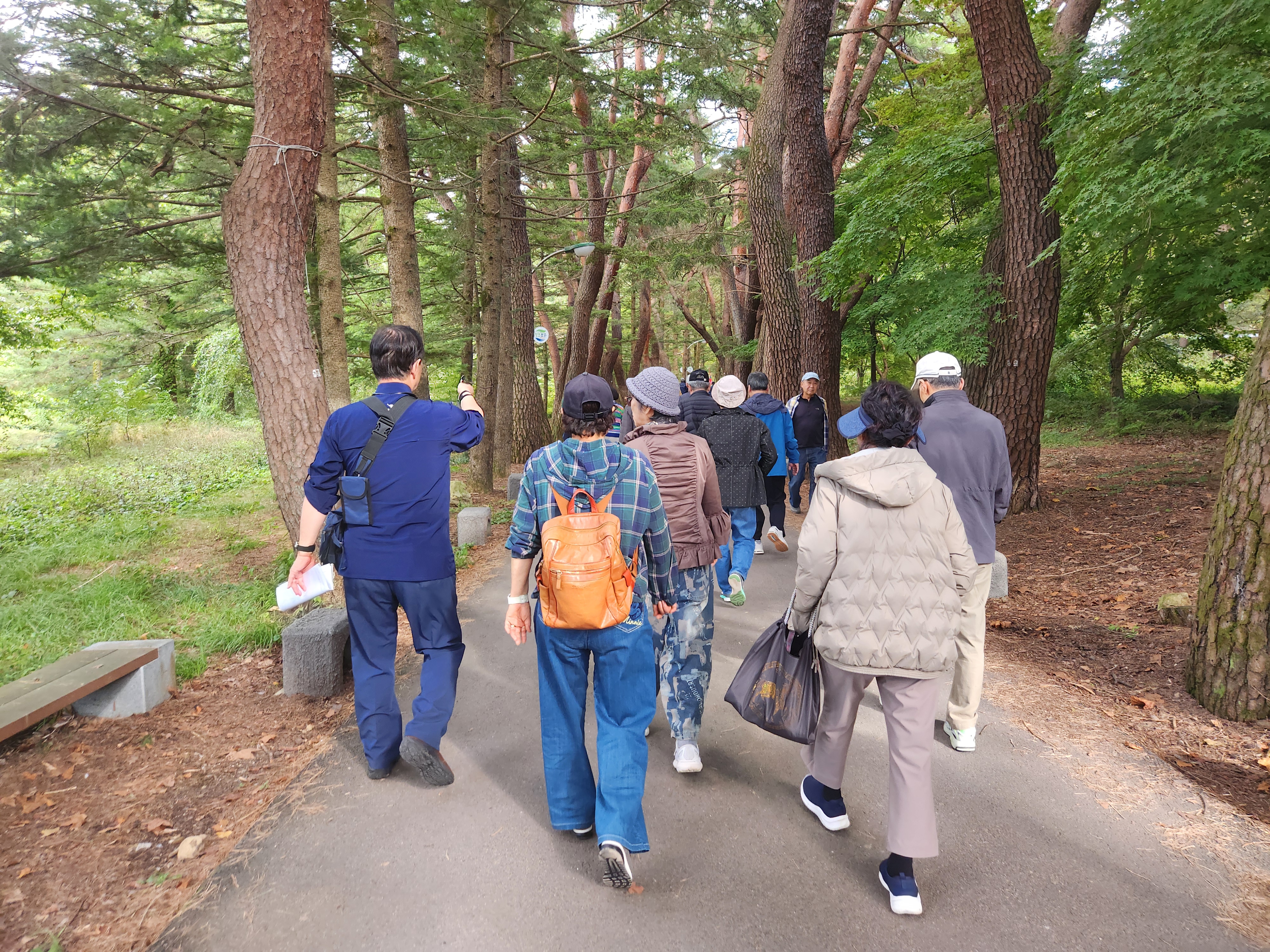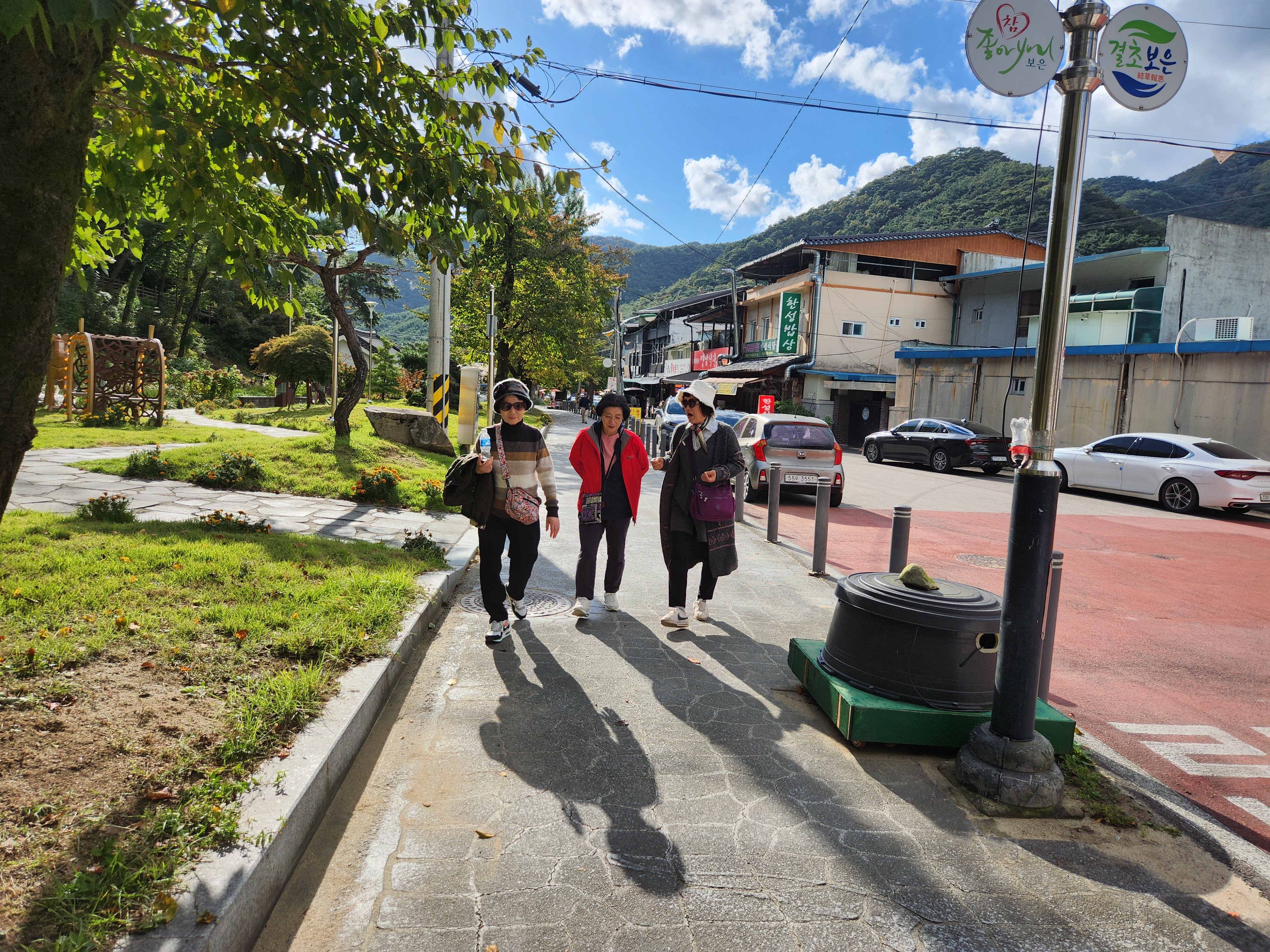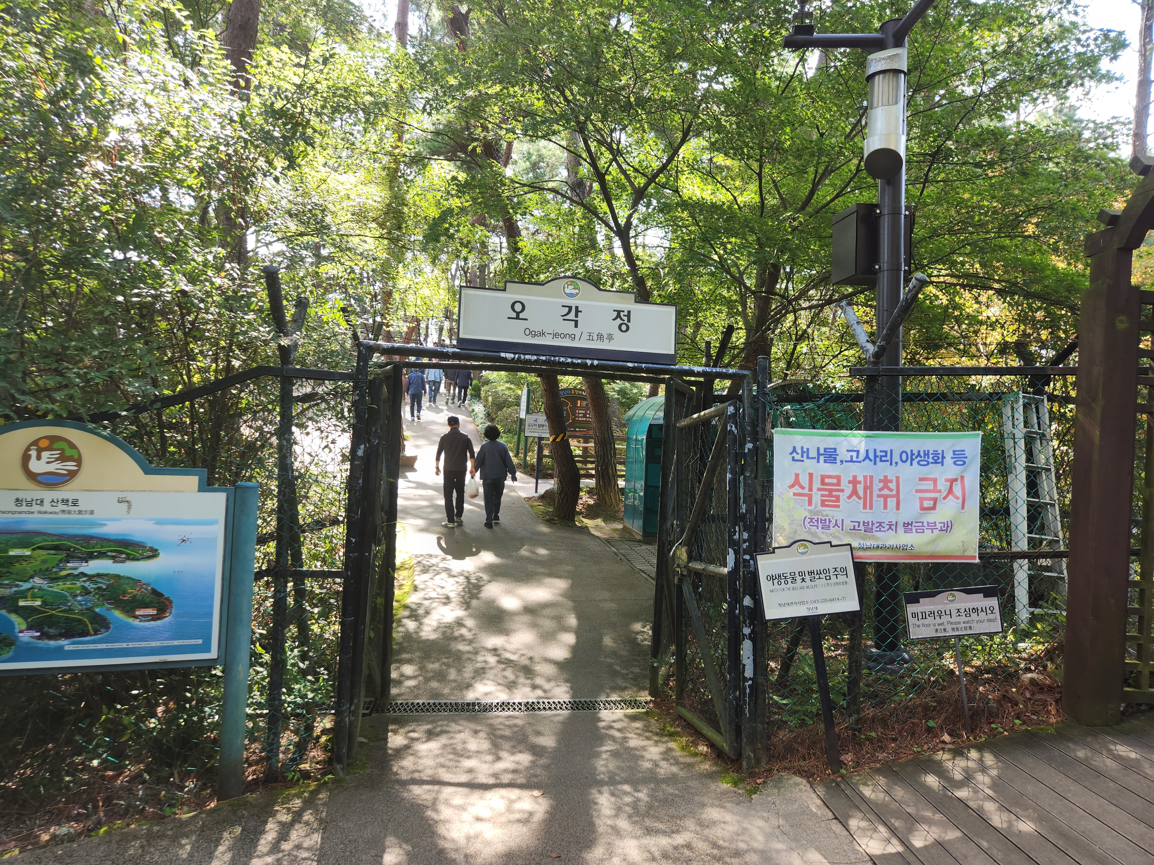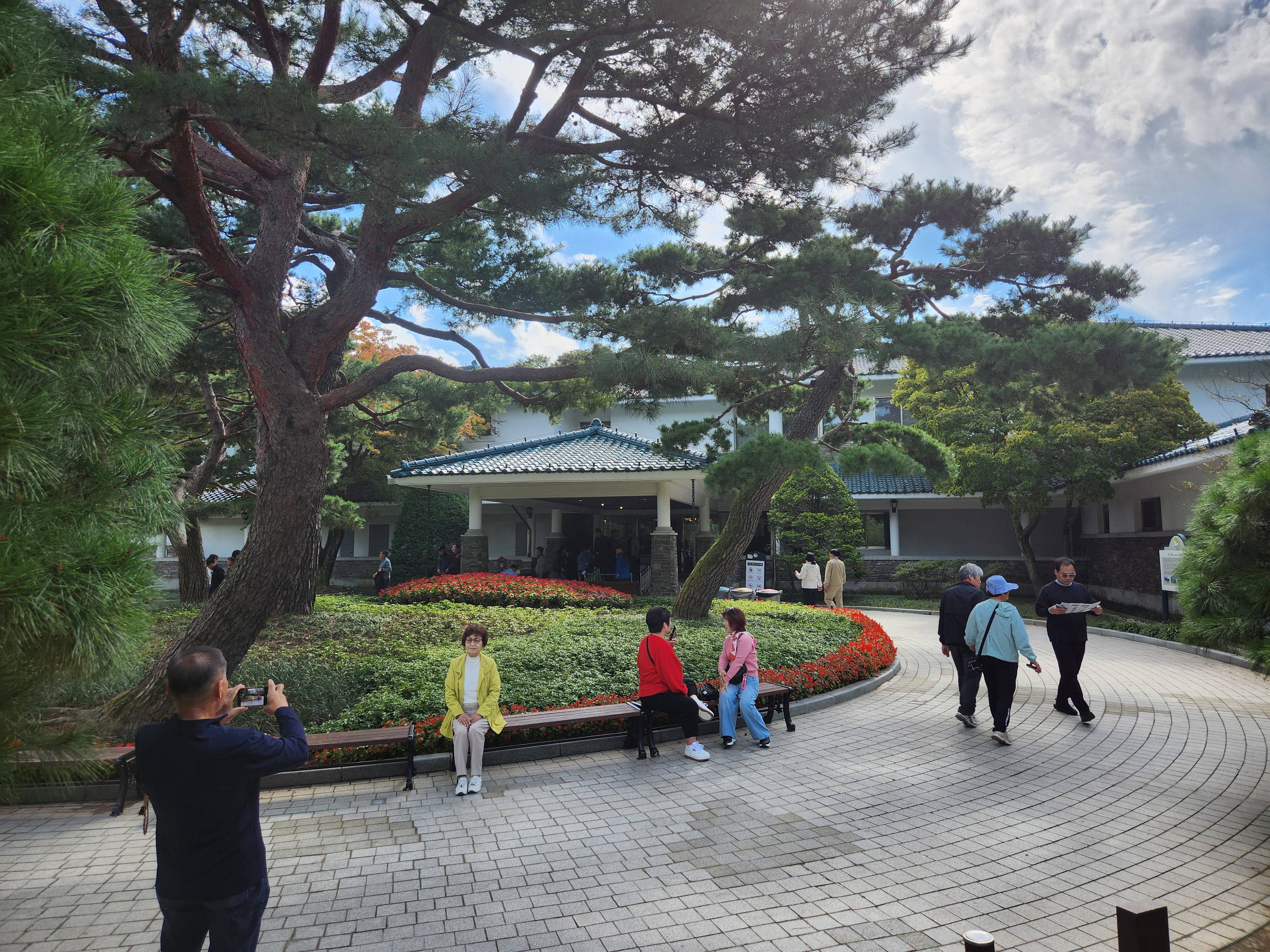본관을 둘러보고 오각정으로 향한다. 오각정은 20여년 동안 대통령 내외분과가족분들의 산책코스로 가장 사랑을 받아온 곳이다. 다양한 야생화와 숲이 어우러져 삼림욕하기에도 좋고 호수를 바라보면서 물멍쉬멍하기에도 더할나위없다. 정자에 오르면 전인구 동문은 의례 챗지피티에 의례하여 시 한 수를 읊는다. 시는 언제 들어도 감성을 자극한다. 청남대을 둘러보고 속리산 법주사로 향한다. 약 1시간이 소요된다. 법주사로 가는 길에 오후 1시 넘어서 가마솥 손두부전문점에서 콩이야기 정식(청국장, 콩비지,손두부, 13,000원)으로 오찬을 즐기고 관광버스에 다시 오른다.
