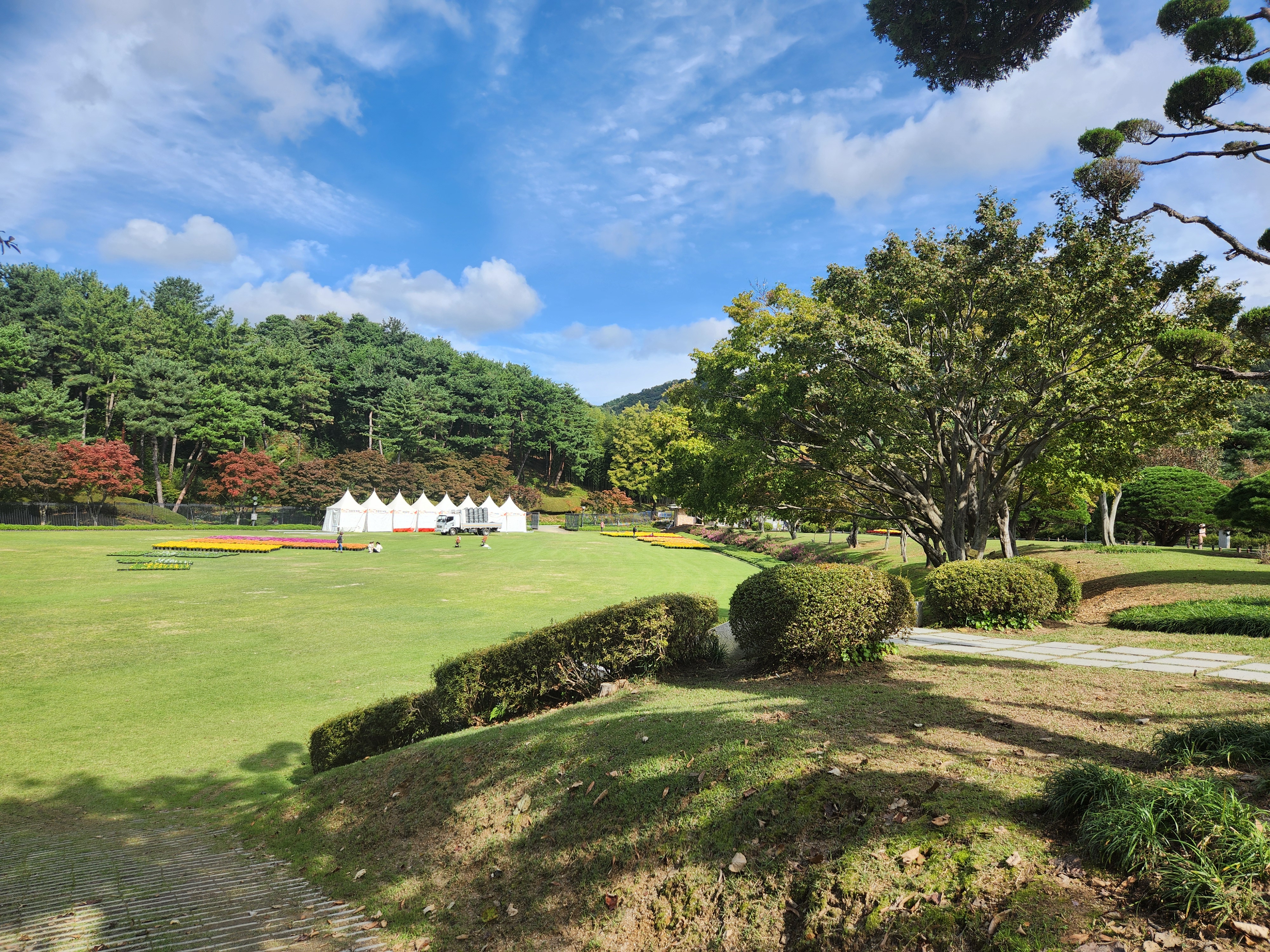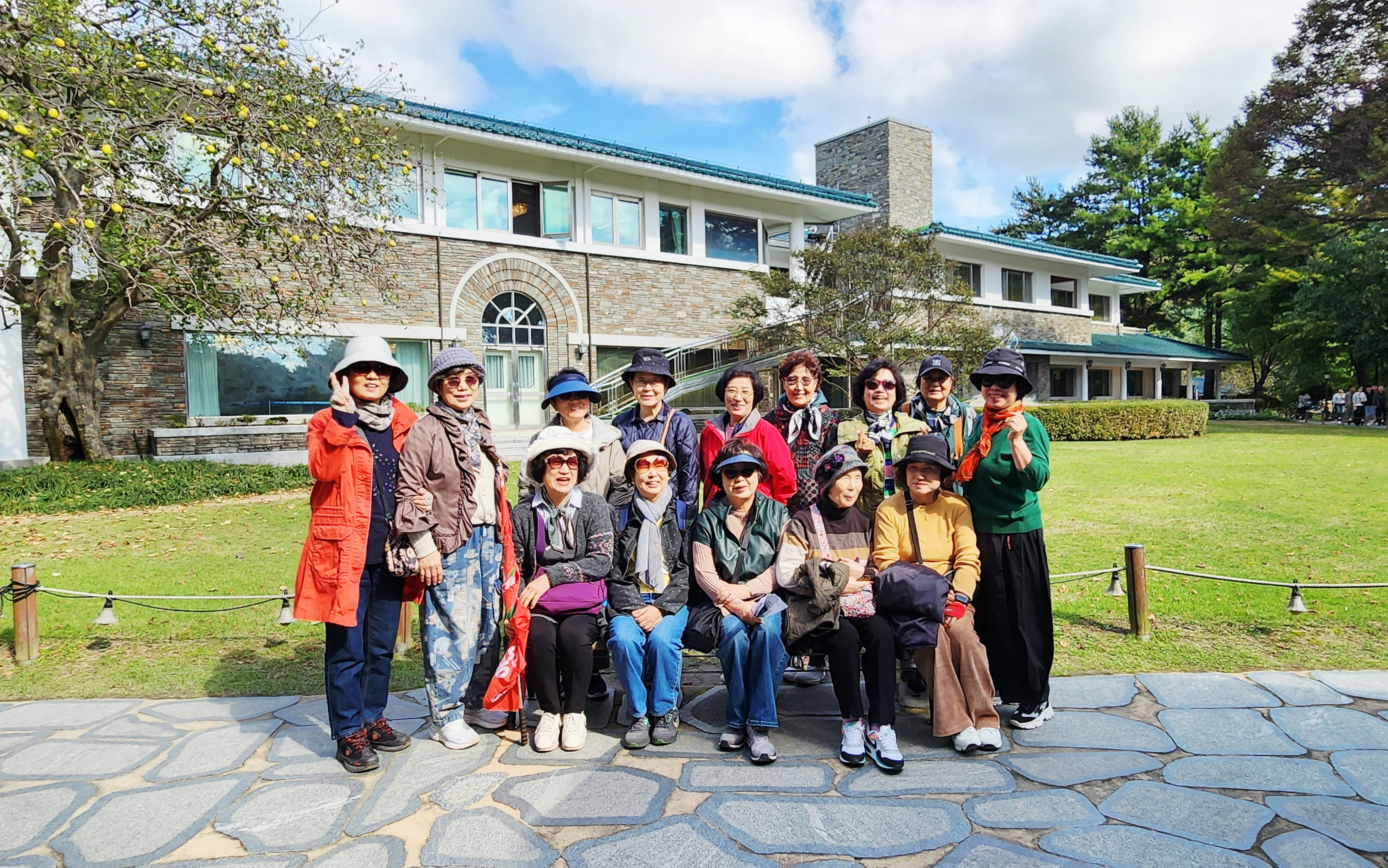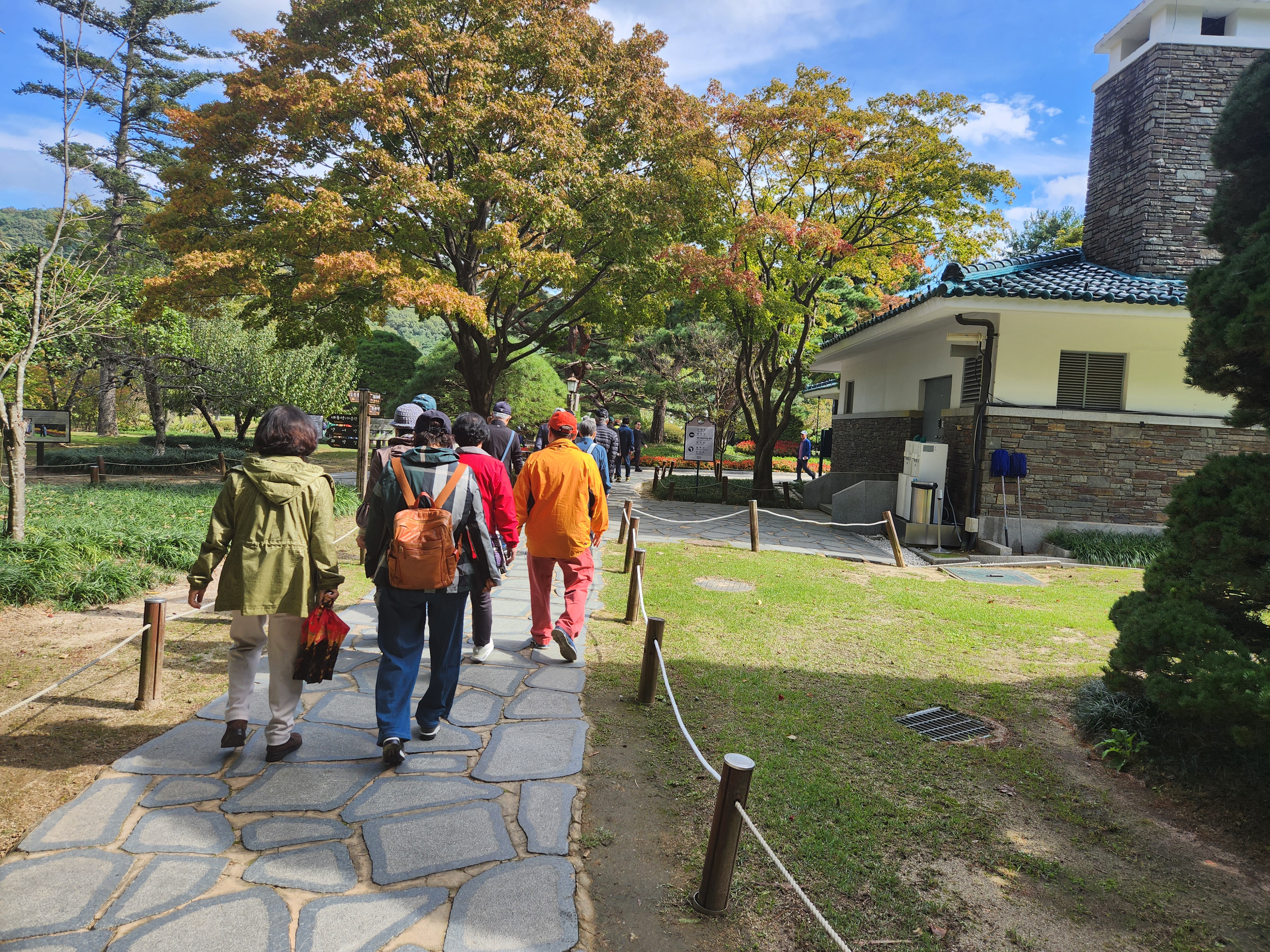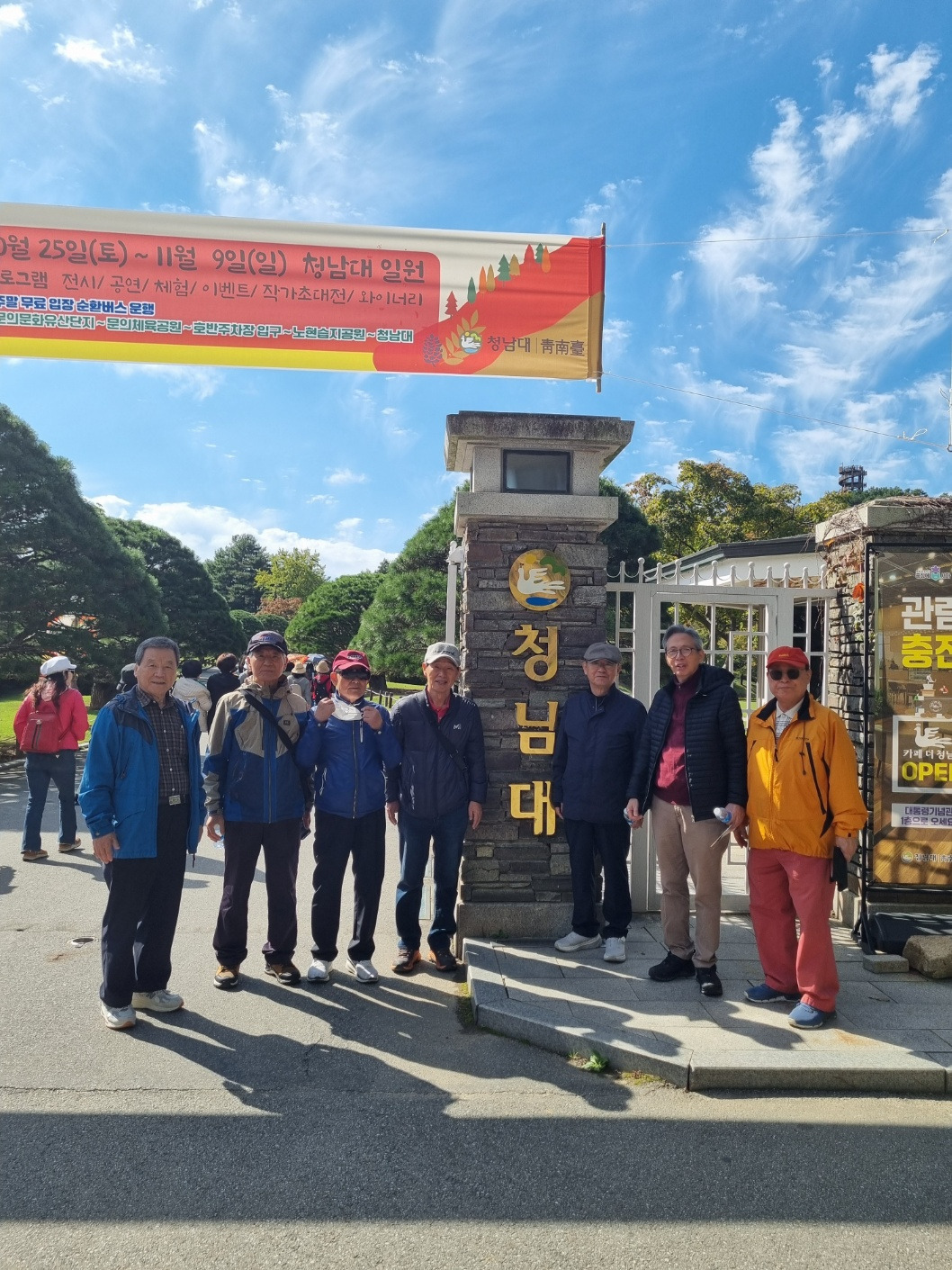 가을은 점점 깊어만 가고 날씨는 쌀쌀해지고 있다. 가을은 여행하기에 가장 좋은 계절이기도 하다. 쌀쌀한 바람과 푸른 하늘에 알록달록한 단풍이 여행길에 오르게 한다. sd`16 동문회는 10월을 맞이하여 충북 청남대와 속리산 법주사를 가을 여행지로 선정하였다. 해마다 이맘때는 가을여행을 떠난다. 사당역에서 관광버스에 탑승하고 경부고속도로에서 당진,영덕 고속도로로 갈아타면 2시간 이내에 청남대에 도착한다. 참가인원은 부부동반을 포함하여 37명이다. 청남대는 20년 간 전두환, 노무현, 김영삼, 김대중, 노무현 등 5명의 대통령이 휴식과 함께 국정을 운영하던 곳으로 대청호를 품고있어 경치가 제법 아름답다.