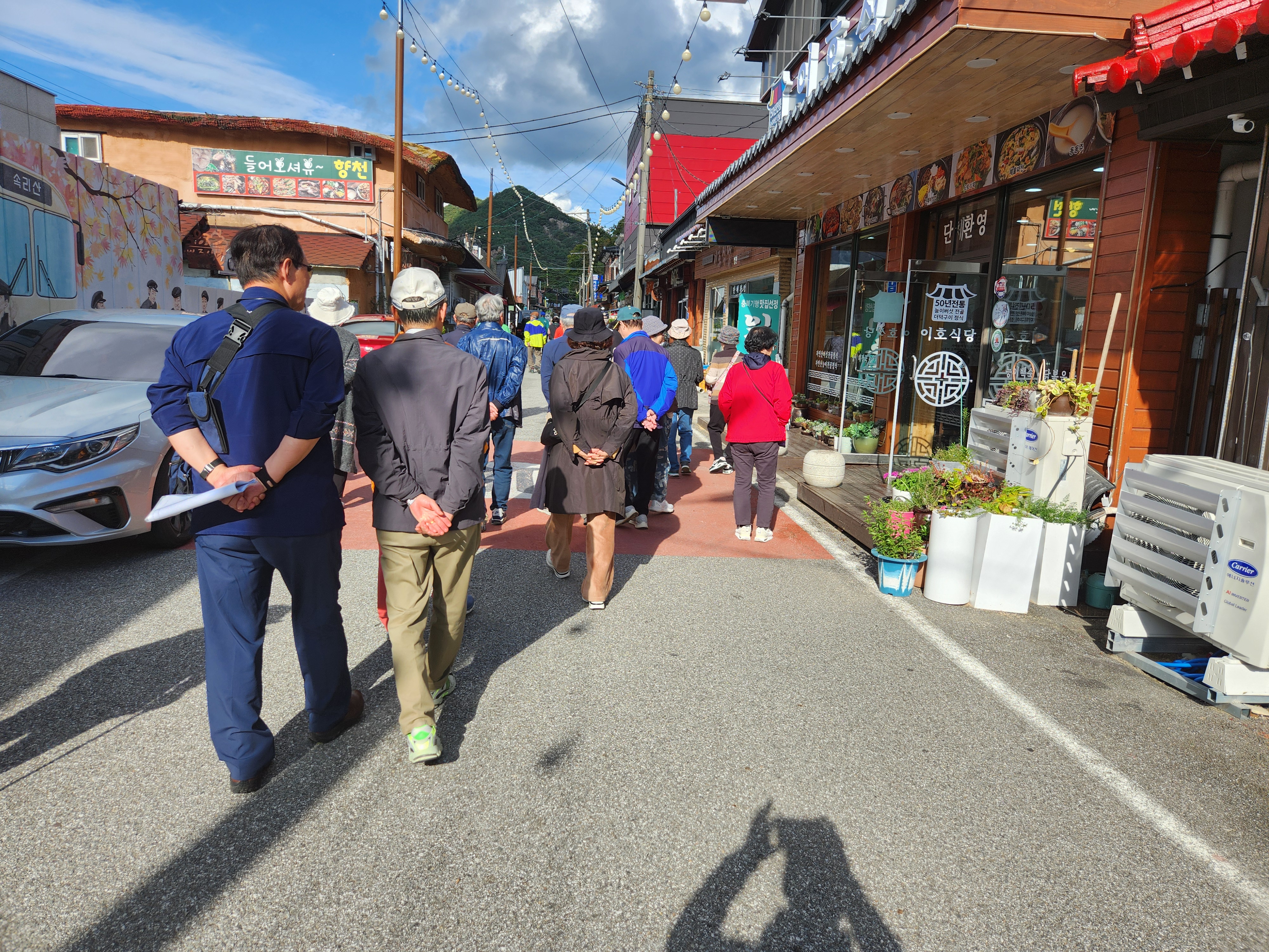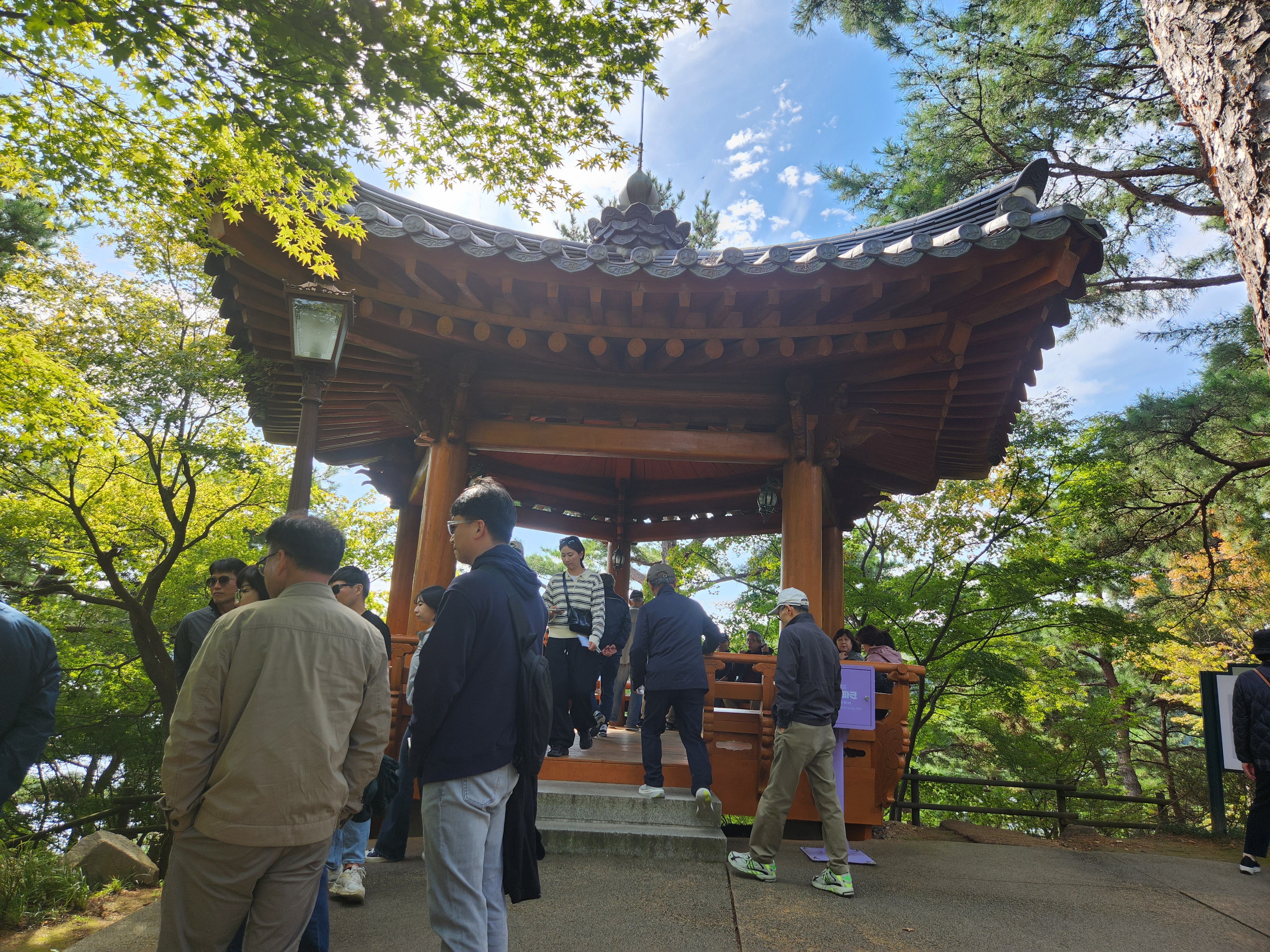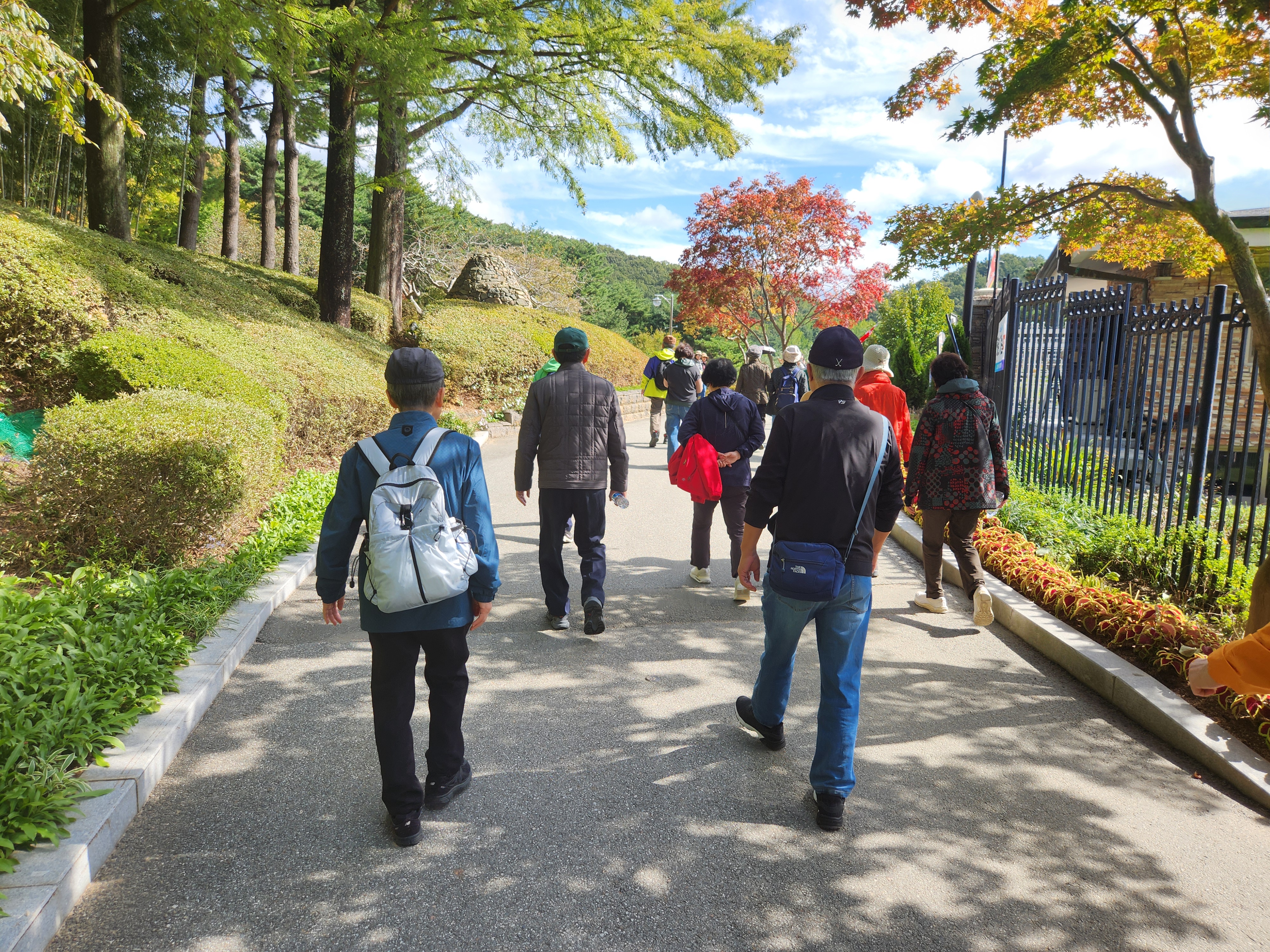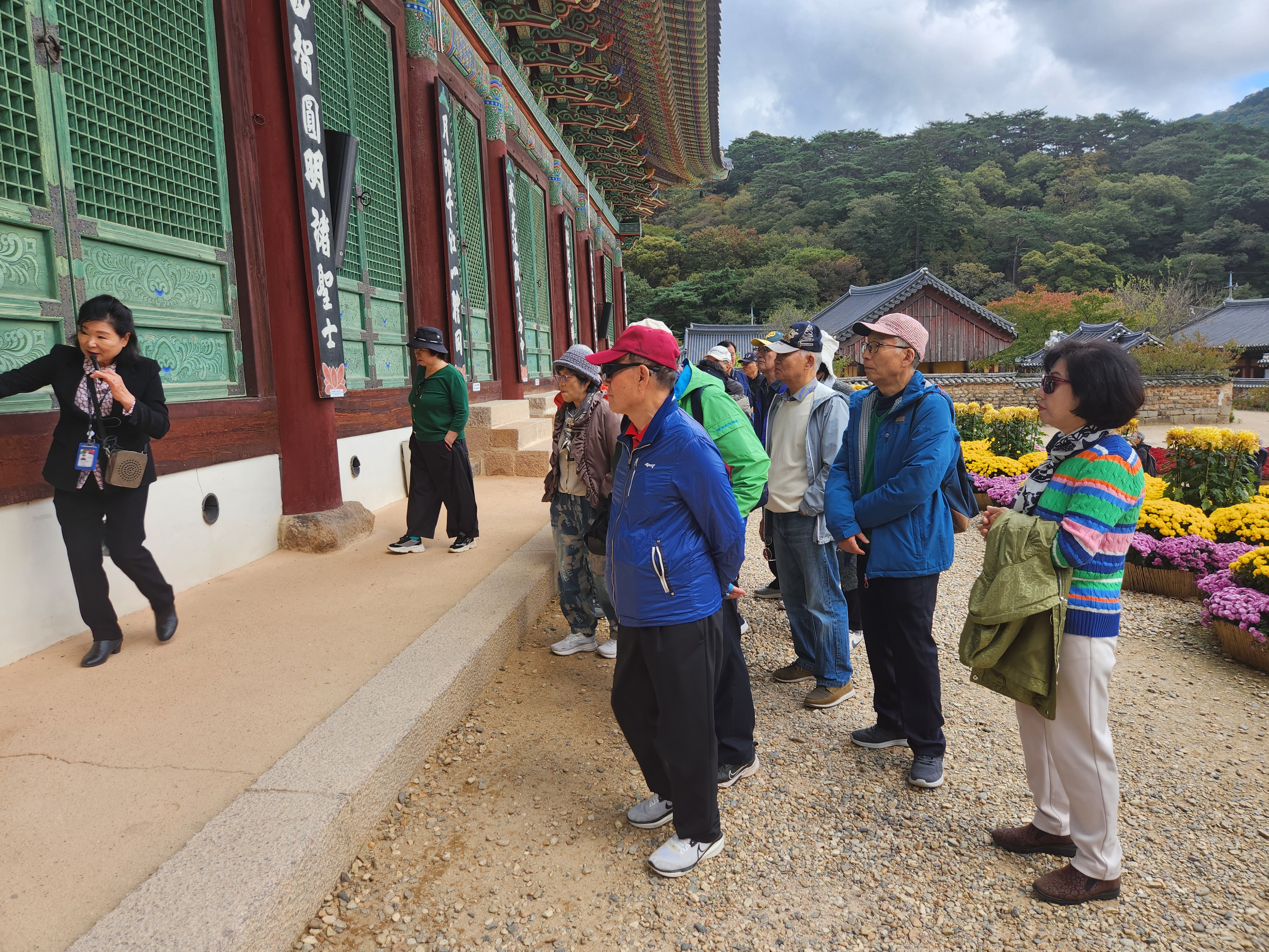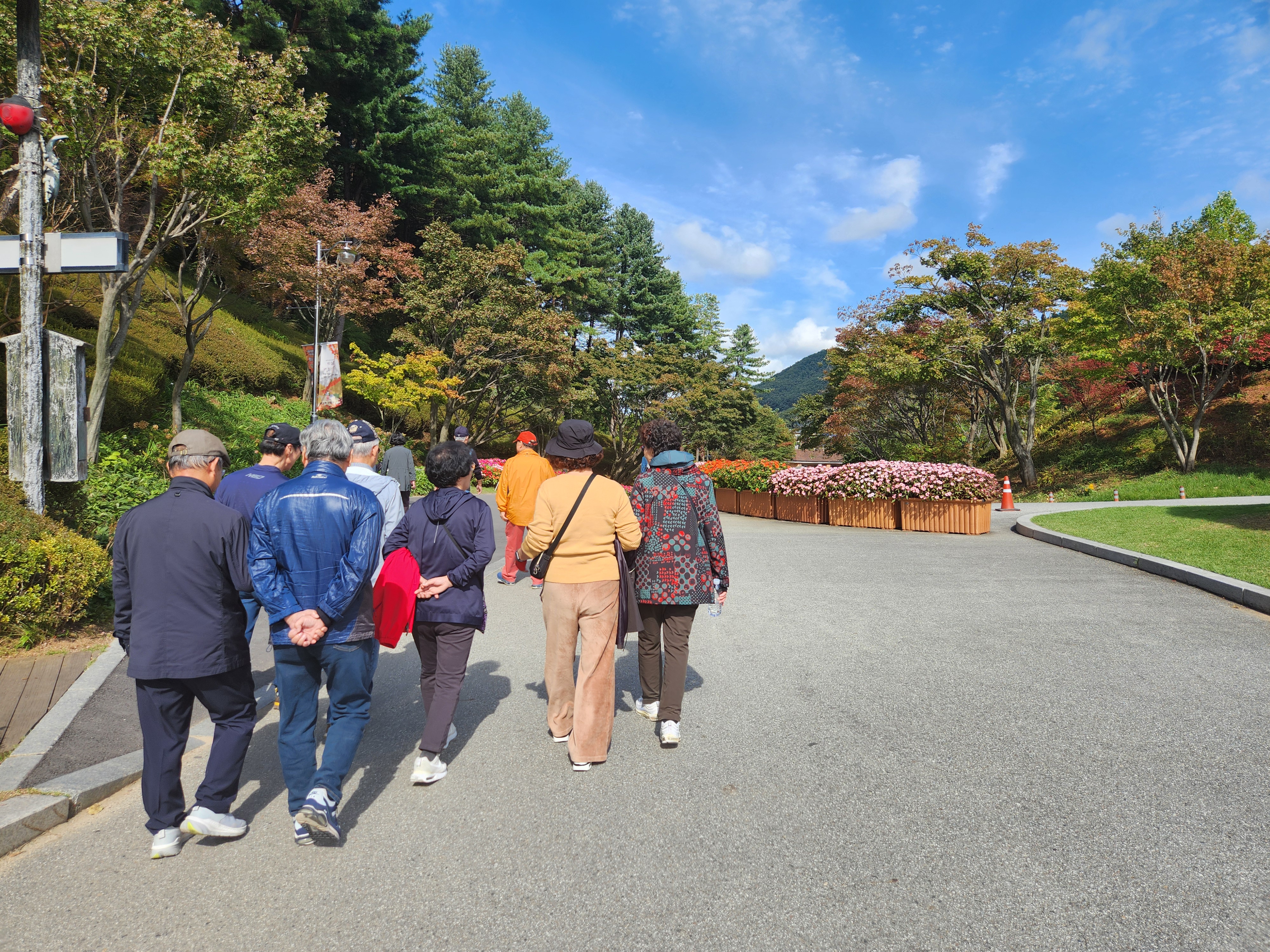 청산유수로 말씀하시는 해설을 듣고 몰랐던 사실들을 알게된 소중한 시간이었다. 회장단에서 수고하신 댓가로 수건을 선물하였다. 속리산 자락에 위치한 법주사는 병풍처럼 둘러싸인 산줄기와 어우러져 그 자체로도 아름답지만 단풍이 들면 더욱 그림같은 풍경이 펼쳐질 것으로 생각된다. 법주사를 뒤로하고 상경길에 오른다. 상경도중에 안성휴게소에서 각자 취향에 맞는 저녁식사를 하고 밤 8시경에 신분당선 상현역에서 각산진비하였다. 전형적인 가을 날씨로 여행하기에 더할나위 없었다. 어느 여행보다도 더 알차고 풍요로운 여행길이었다. 동문들 모두 즐거움과 행복이 가득하였다.