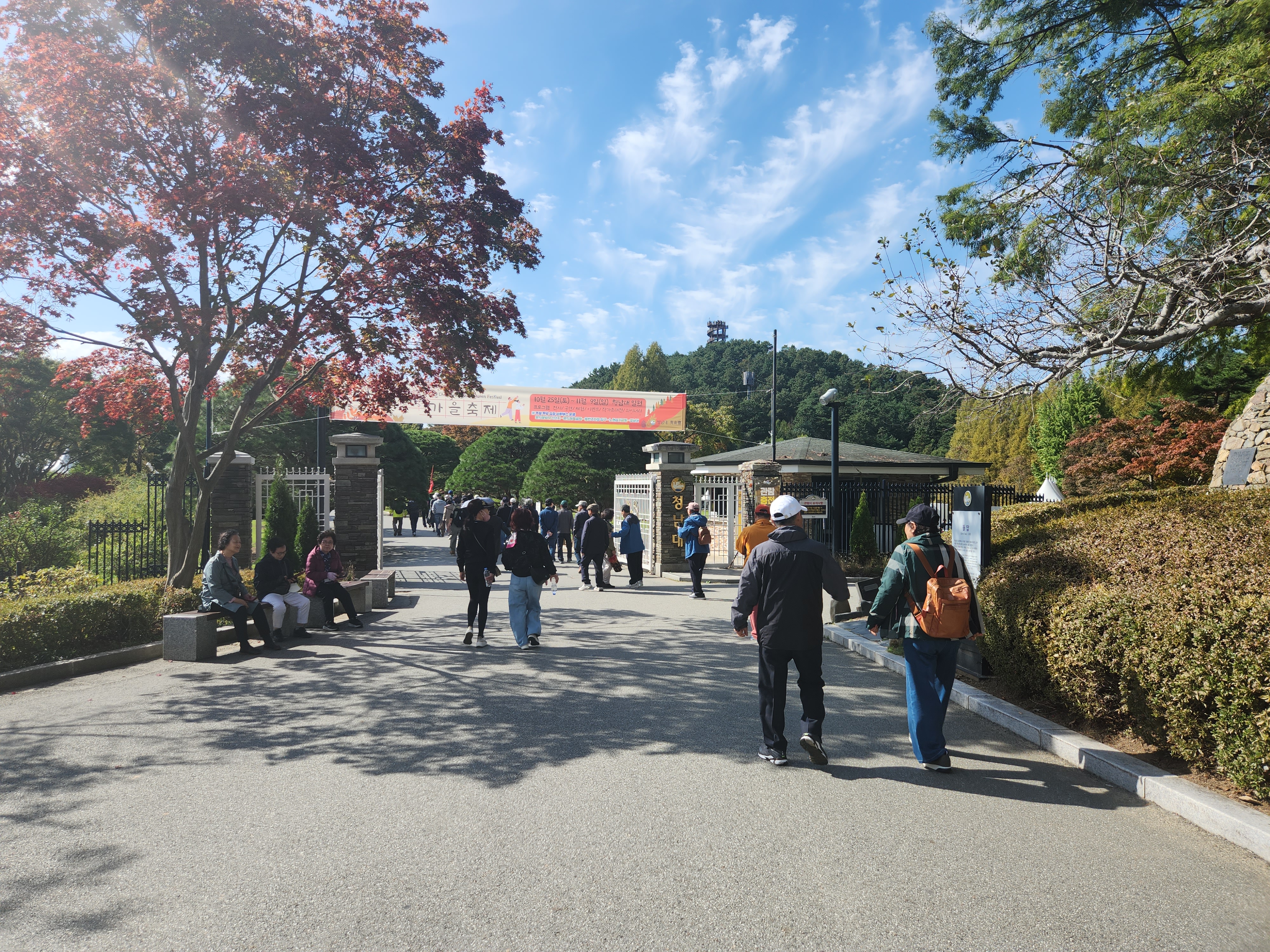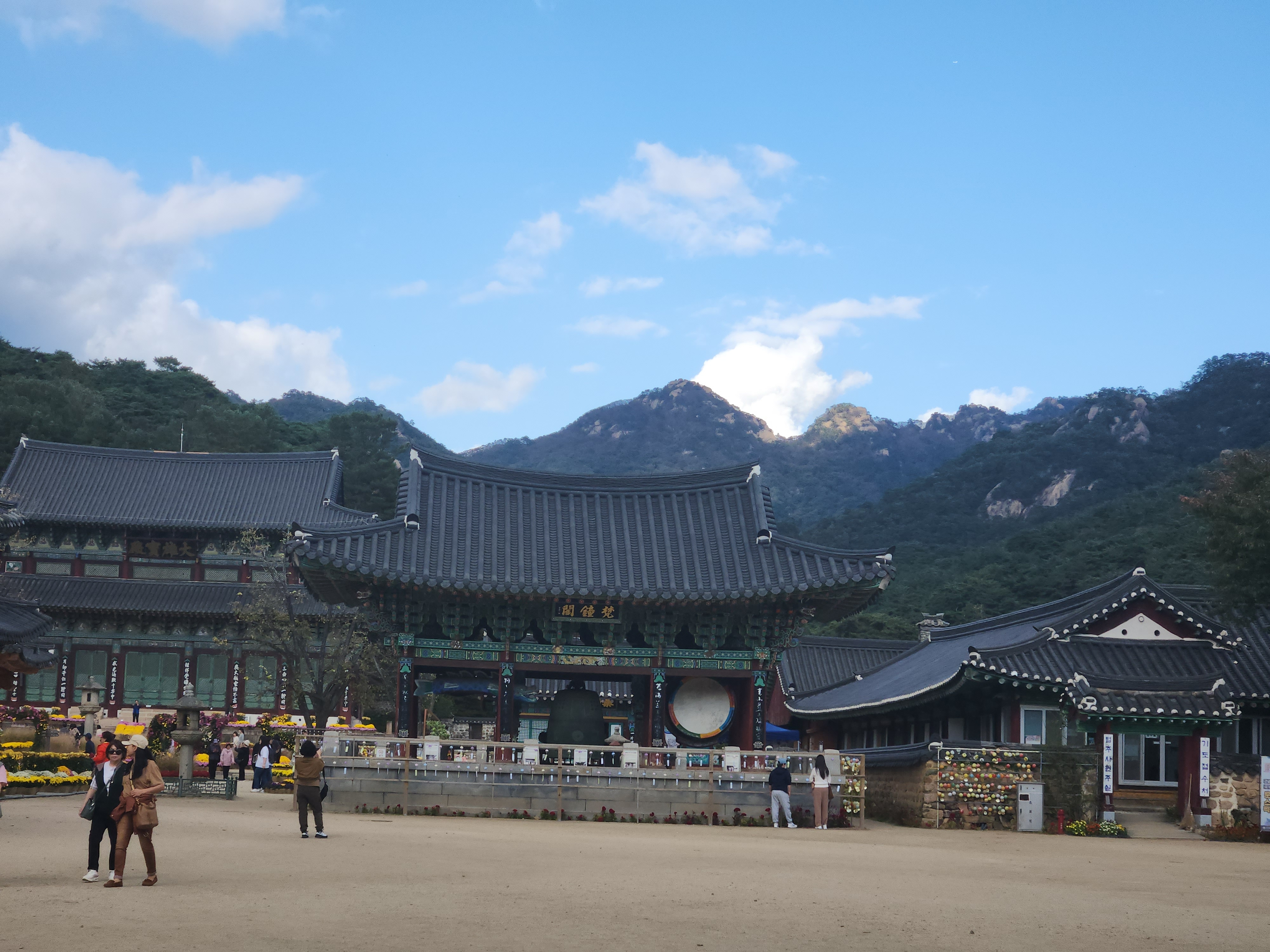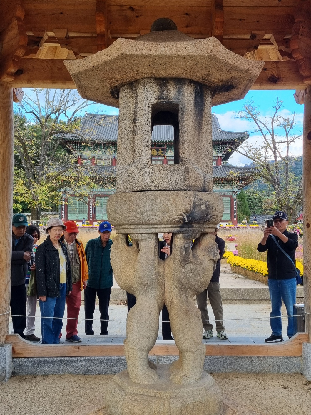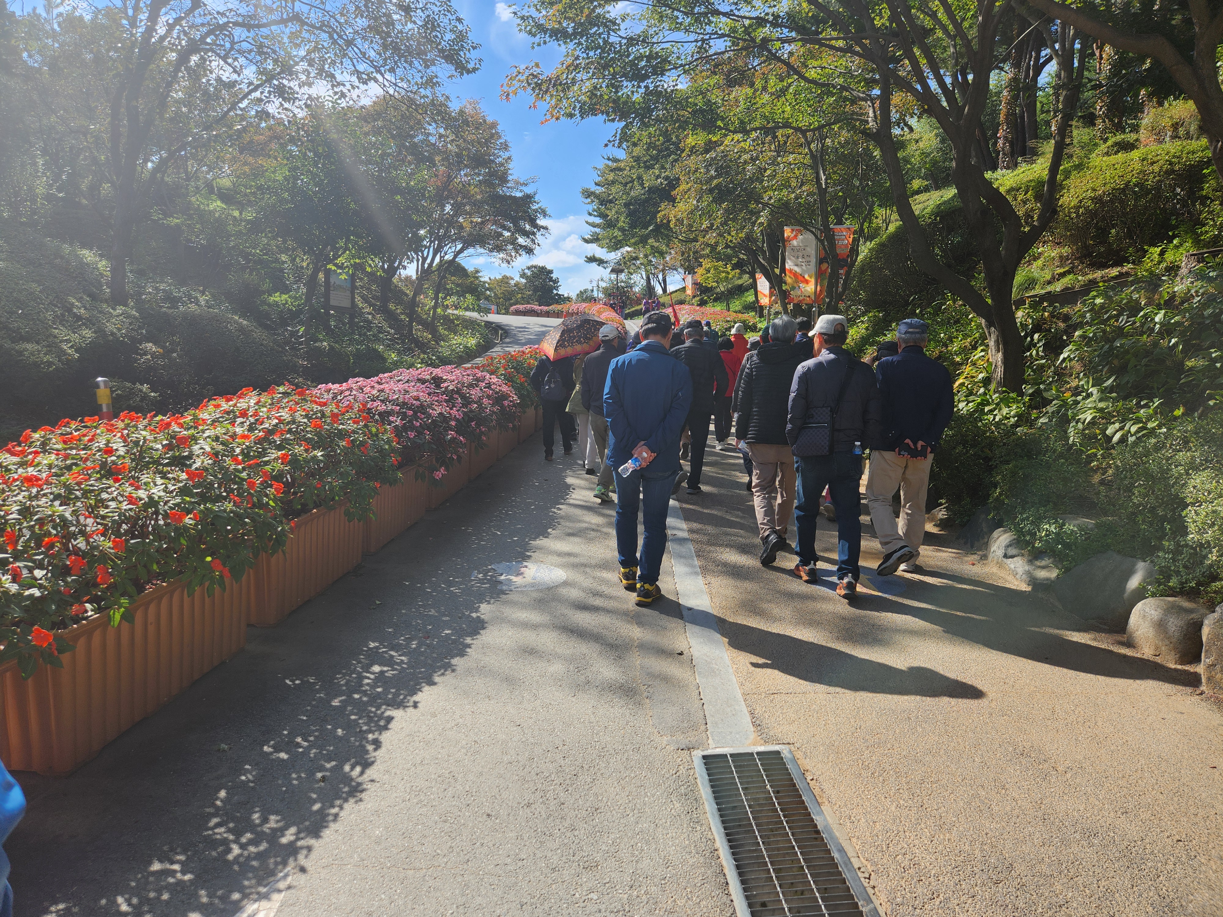 여성해설사는 나이가 드신 분으로 법주사의 역사에 대하여 자세히 설명하고 금강문을 통과하면 금동미륵대불과 천왕문이 한눈에 들어온다 법주사는 서기 553년 진흥왕 14년에 승려 의신이 창건한 천년고찰로 부처님의 법이 머문다'는 뜻을 가지고 있다. 임진왜란시 전소된 것을 유정이 팔상전을 중건하는 등 수차례에 걸쳐 중수를 거쳤다. 법주사를 지키는 천왕문(악귀들을 물리치는 사천왕상을 모신 곳)으로 가는 길 양옆으로 알록달록한 국화꽃으로 단장하였다. 국화꽃 전시회는 2025년 10월 16일부터 11월 말까지이다. 국화꽃이 아름다워 시선을 뗄 수 없다. 꽃은 누구나 다 좋아한다.