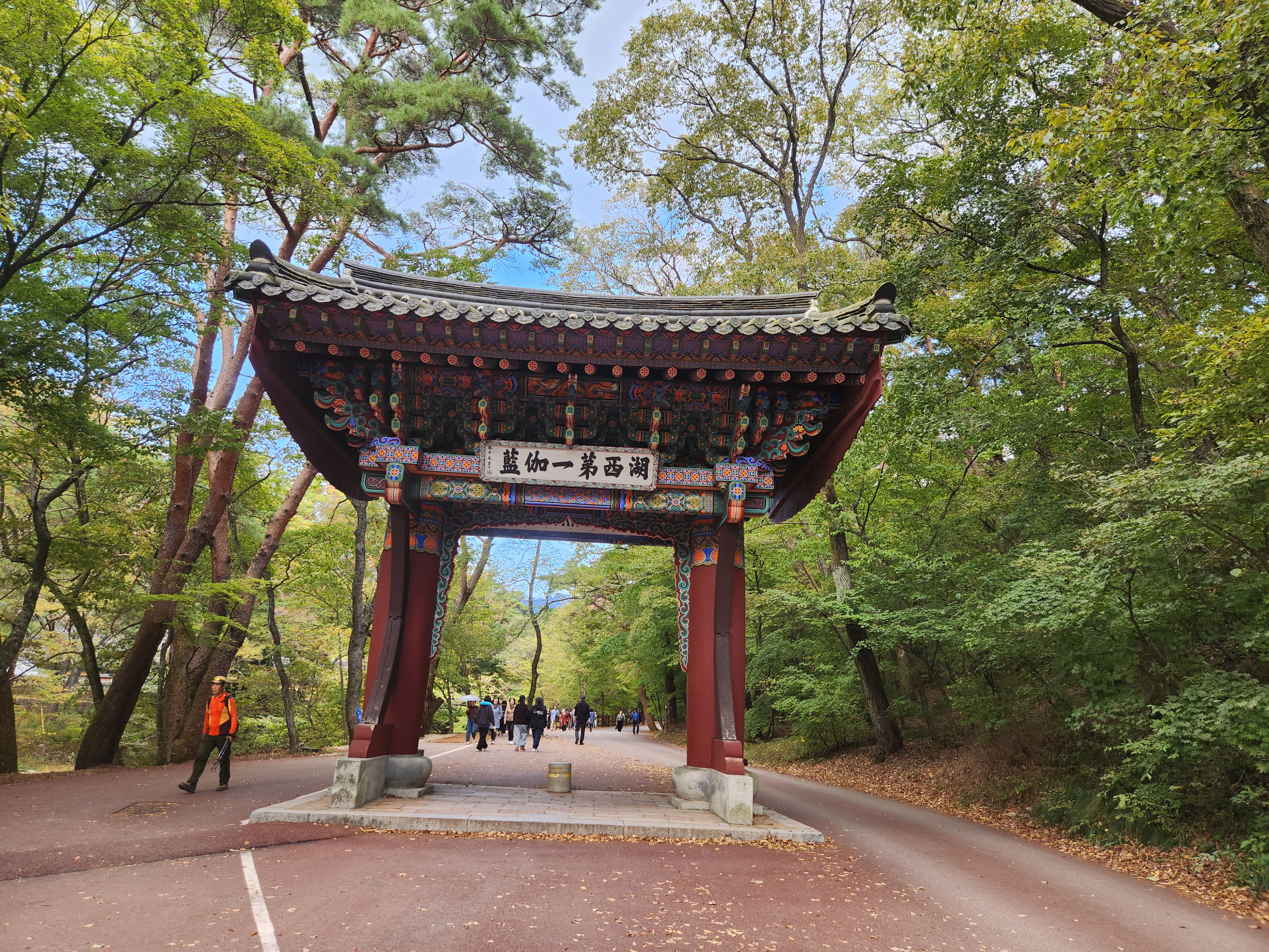 금광문을 들어서면 금동미륵대불과 천왕문이 선명하게 보인다