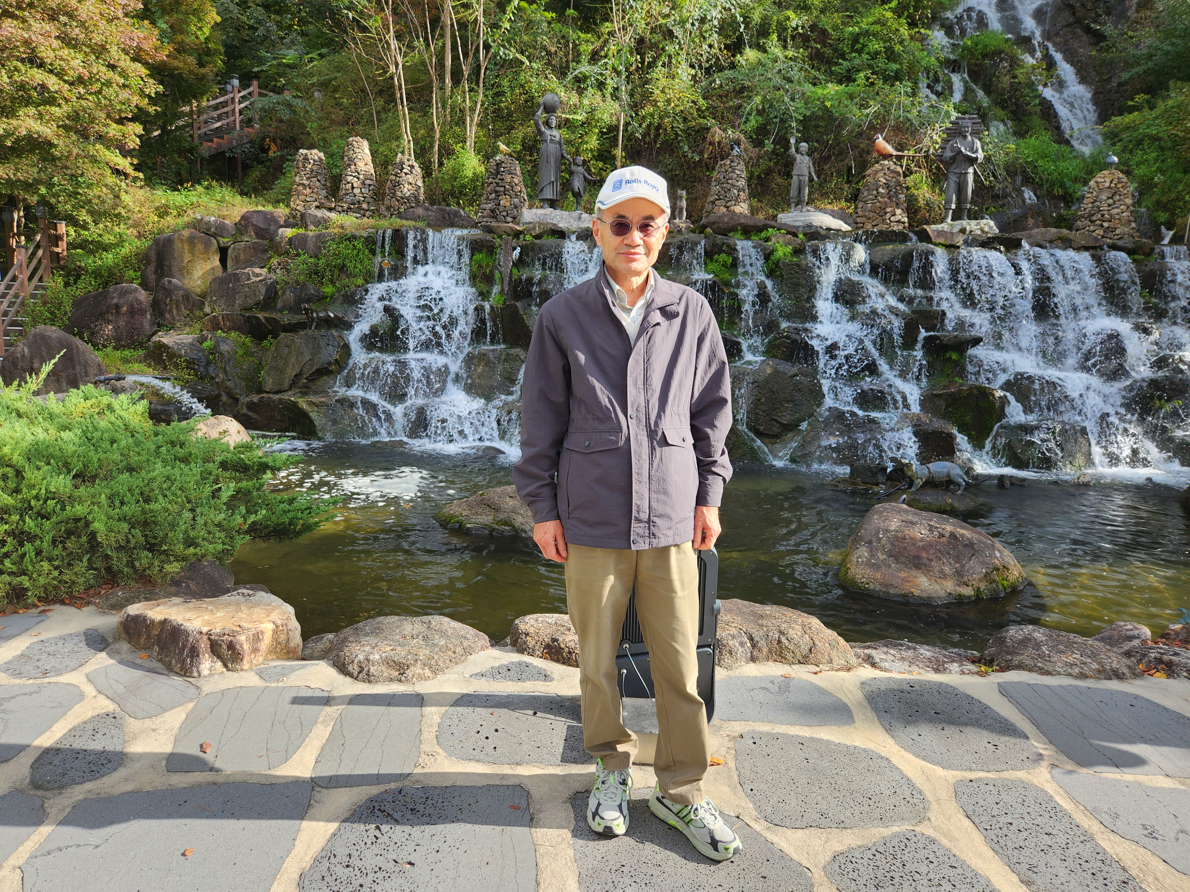 인공폭포에서 인증샷하는 정철의 동문(흐트러짐이 없는 자세 멋쟁이)