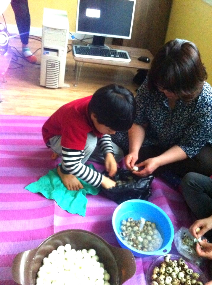 * 이날 깐 메추리알로 장조림을 담아 나눠가졌습니다.~