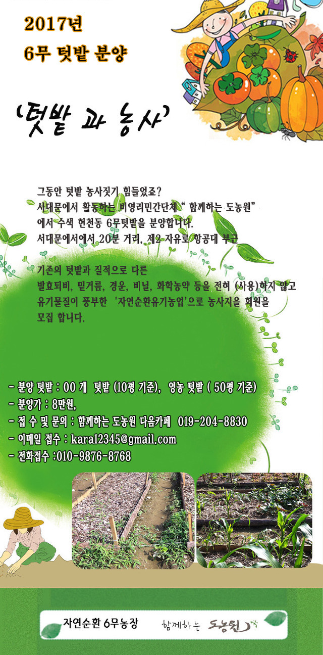- 분양평수 10평, 년 회비 80,000원, 재배 작물 제한 없음