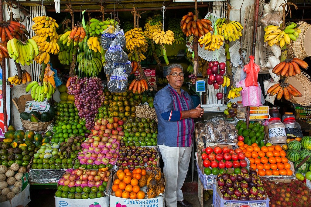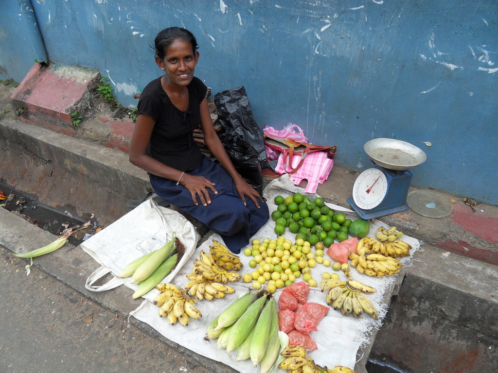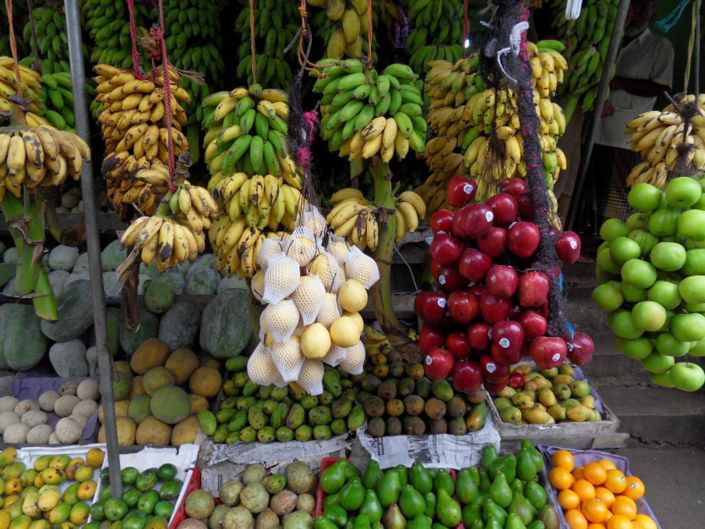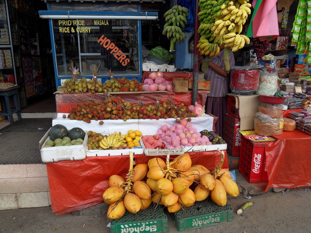 빠나나, 옥수수, 귤,vkvkdi 등과 열대과일 팔고있음