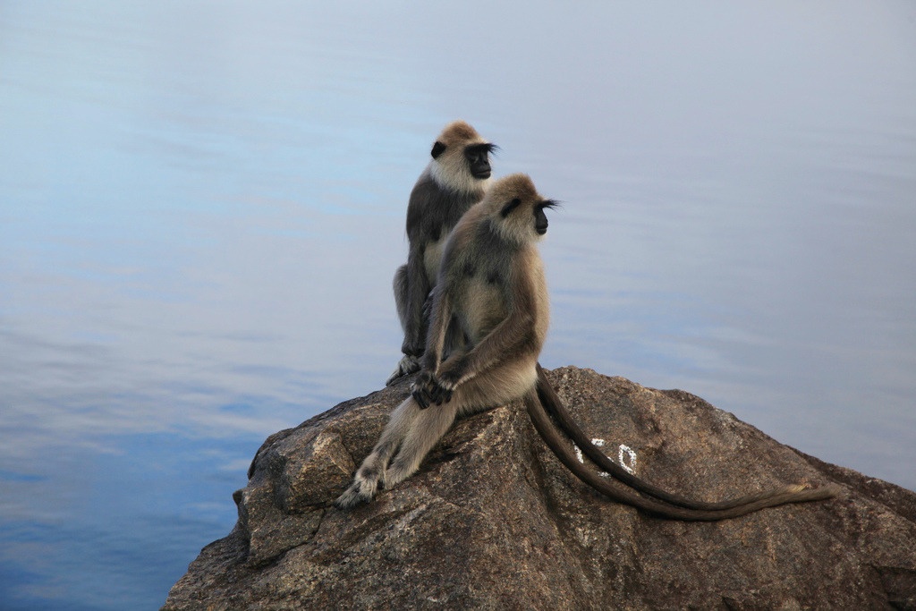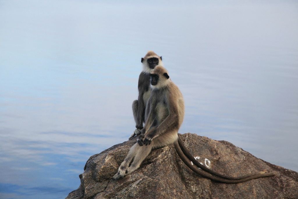 긴 꼬리 원숭이는 부부간에 情이두터워 늘 붙어서 생활한단다.