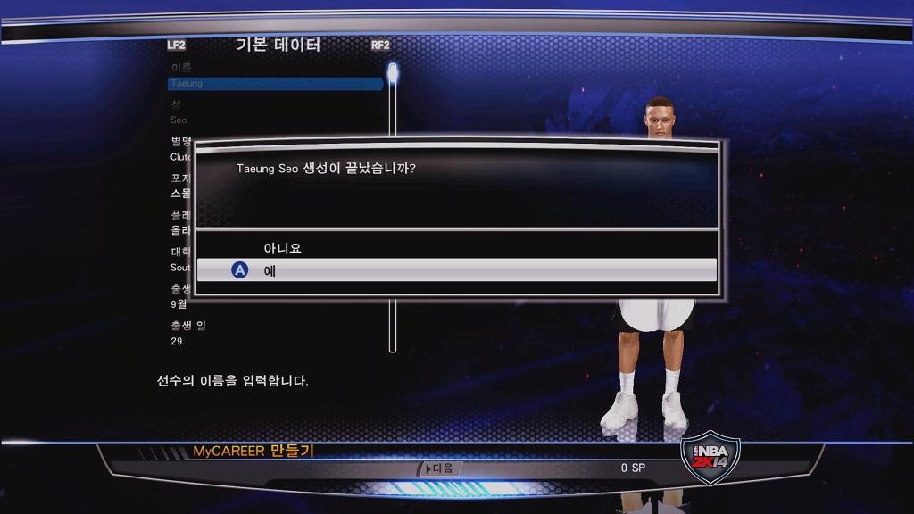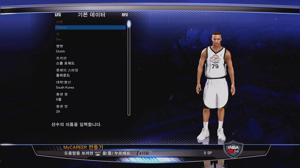 게임에 들어가면 내 선수를 만드는 화면이 나옵니다.