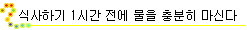 | 식사할 때 야채나 국, 수프 등을 먼저 먹고 그 다음에 칼로리가 높은 음식의 순서로 먹으면 주식을 덜 먹게 되어 칼로릐 섭취를 줄일 수 있다. | |