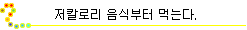 TD class=text>매일 콜라를 2캔씩 마신다고 가정했을 때 일반 콜라를 다이어트 콜라로 바꿔 마시게 되면 이것만으로도 1년에 7kg정도의 체중감량 효과를 볼 수 있다. 또한 달걀을 먹을 때도 흰자만 먹는 습관을 들이면 달걀 한 개 열량인 75kcal에서 17kcal를 줄이게 된다. 또한 매일 우유를 두 잔씩 마신다고 하면 지방이 적은 저지방 우유나 탈지 우유로 바꿔 마실 경우 1년에 3,3kg의 체중 감량 효과를 거둘 수 있다.