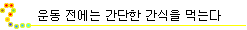 | 운동하기 전에 식사 대신 간단한 간식을 먹으면 운동에 필요한 에너지를 공급받을 수 있고, 또 운동이 끝날 때까지 허기를 느끼지 않을 수 있다. 운동하기 2시간 전에 버터를 바르지 않은 식빵에 잼을 발라먹거나 과일을 조금 먹는 정도가 적당하다. |