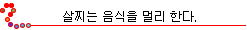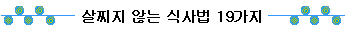 | 하루종일, 혹은 며칠씩 굶다가 한꺼번에 많이 먹게 되면 우리 몸의 소화기관에서 영양분의 흡수가 왕성해지기 때문에 오히려 살빼기에 역효과를 초래하게 된다. 그러므로 항상 제 시간에 규칙적으로 식사를 해주는 것이 좋다. |