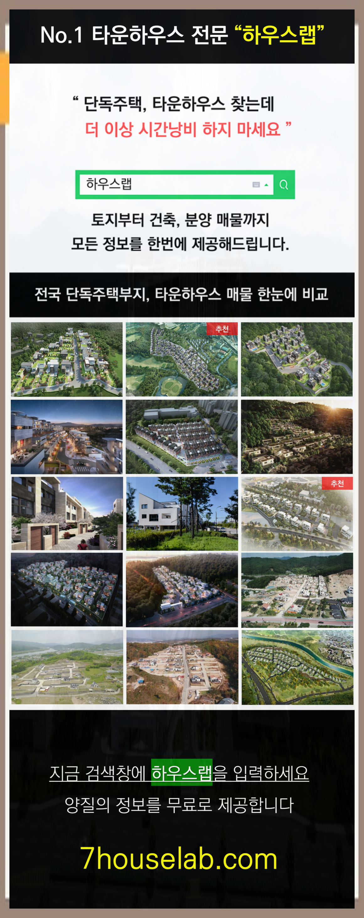 지금 즉시 네어버 검색창에 "하우스랩" 을 검색하세요. 단독주택, 타운하우스 정보를 지도로 확인할 수 있습니다.