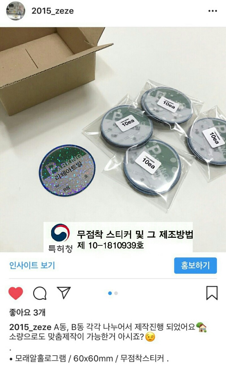 [스크랩] 특수스티커제작/제제디자인의 무점착스티커/아파트/빌라 주차스티커부착 이제 걱정하지마세요/100%무점착스티커/100%/품질보증/제제디자인 무점착스티커특허등록