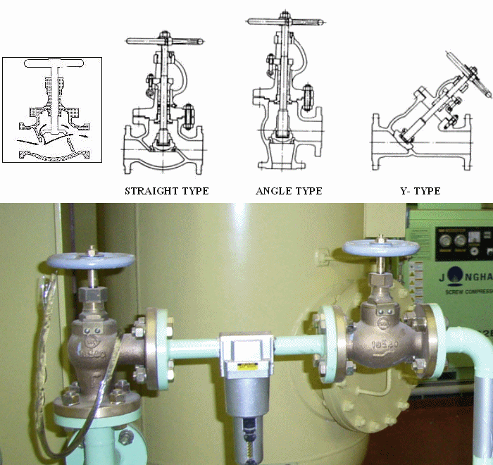 GLOBE VALVE는 유로의 차단 또는 유량의 조절용으로 사용된다. GATE 밸브에 비하여 유체의 제어적인 즉, 압력조절, 유량조절, 유로 차단 등이 우수하나 밸브구조의 복잡함과 이에 따른 구조적 불안정으로 인하여 밸브 크기는 기술적, 경제적으로 제한을 받는다.