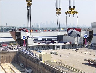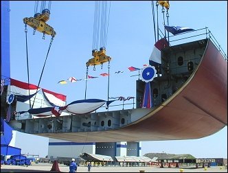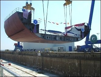 예전 블록개념이 도입되기 전에 건조선대에 용골과 프레임을 뼈대로 세워놓고 외판을 붙여가며 선체를 만들어 가던 시절 용골을 거치하는 것이 선박건조의 첫단계 착수로 의미가 있었다.