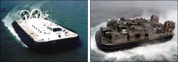 ACV 는 매우 비용이 많이드는 형식이나 그 수륙양용의 특성 때문에 상륙정으로 쓰이고 있다. 미국 해군의 조사에 의하면 전세계의 해안 중에서 재래식 상륙정을 사용할 수 있는 해안은 5% 에 지나지 않으나, ACV를 사용할 수 있는 해안은 75% 에 이른다고 한다. (우측 사진은 미국 해군이 상륙정으로 사용하는 ACV) |
