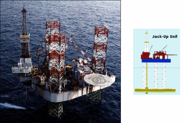 오르내릴 수 있는 다리를 가진 바지의 형태로 필요한 위치로 견인되어 해저면으로 다리를 내림으로 바지를 수면 위로 들어 올려서 안정된 위치에서 시추작업을 할 수 있도록 만들어 졌다. 통상 수심 100m 이내의 장소에서 사용된다.