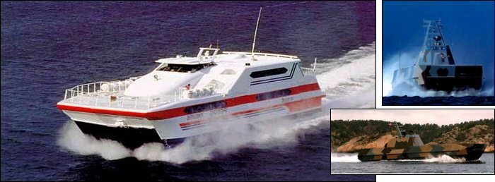 좌측은 부산-거제를 운항하는 데모크라시로, 우측은 노르웨이 해군의 Skjold 급 고속 경비정. |