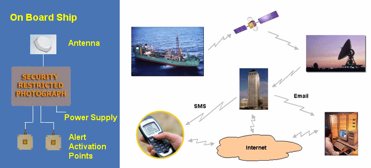SSAS 는 선박이 위협에 봉착하였을 때(해적등으로 부터) 육상의 기관에 경보를 발송하는 장치로 (위 그림 참조) 이 경보는 - 다른 어떤 선박으로도 전달되면 안되고 - 선내에 경보가 울리면 안되며 - 경보를 해제할 때까지 지속되어야 한다.