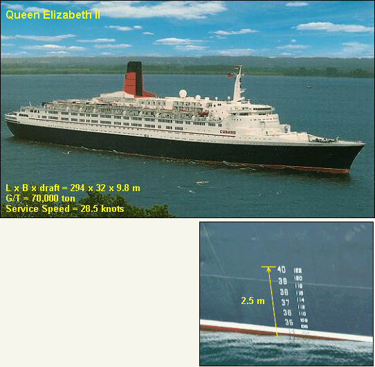 1992년 8월 호화 여객선 Queen Elizabeth 2 호가 미국 메사츄세츠 연안의 Cuttyhunk 부근 모래톱(Reef) 지역을 25 knot 의 속력으로 지나던 중에 해저면에 좌초되어 선수와 선저부에 손상을 입는 사고를 당하였다.