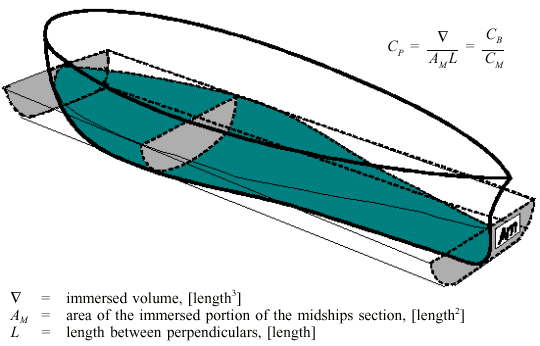 Prismatic Coefficient or Longitudinal Coefficient (주상 비척 계수 혹은 종계수)