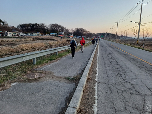 평화 전망대 아래 주차장에서 서해랑 103구간 끝 8.24