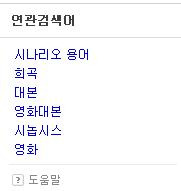 1) Daum에서 '시나리오'를 검색했을 때, 관련검색어로 뜨는 것.