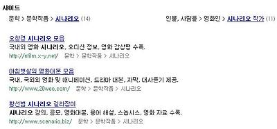이번에는 '시나리오' 검색시 뜨는 사이트들을 비교해 보겠습니다.