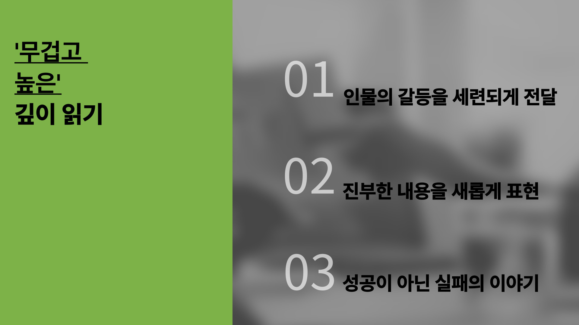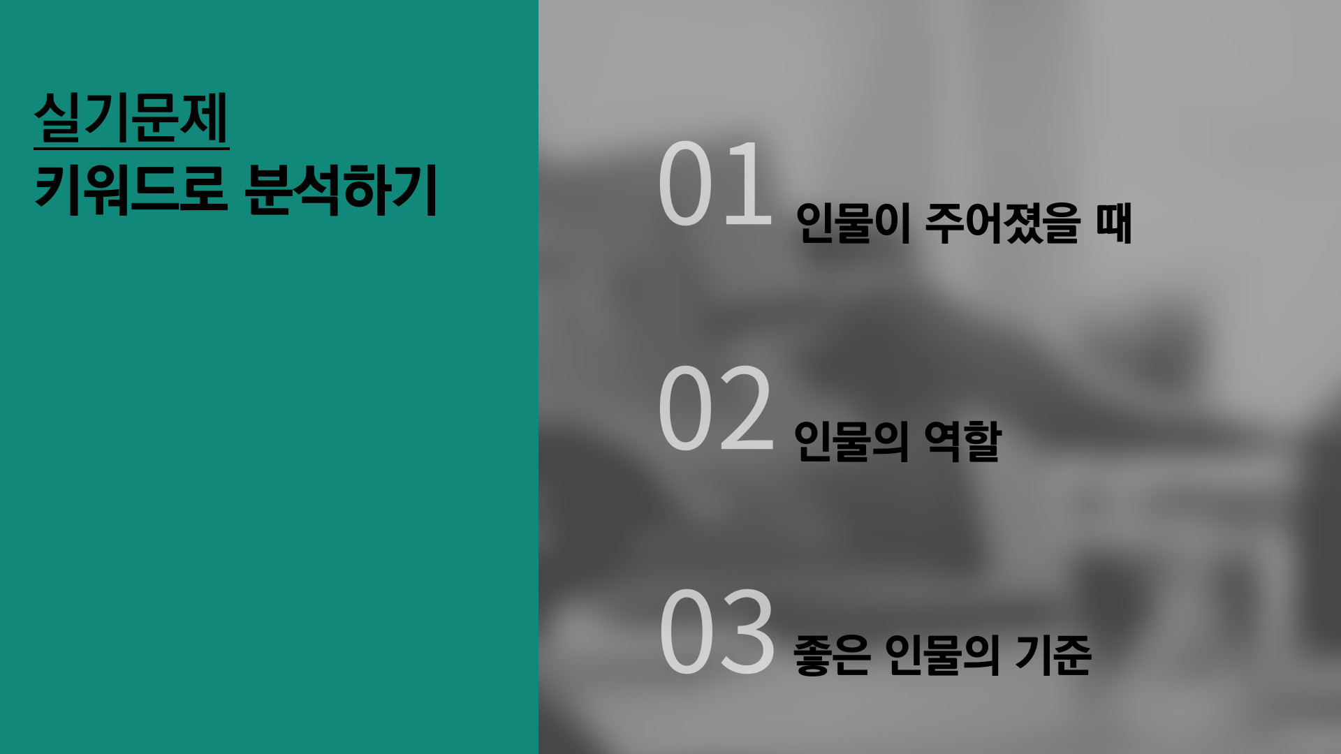 - 캐릭터를 바탕으로 갈등을 개연성 있게 드러내기