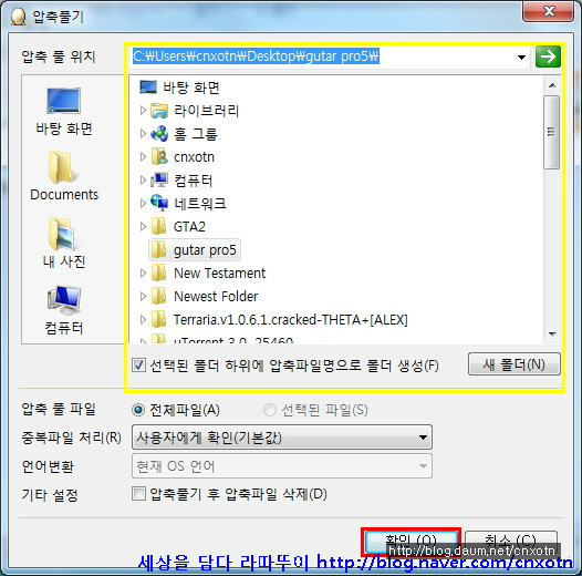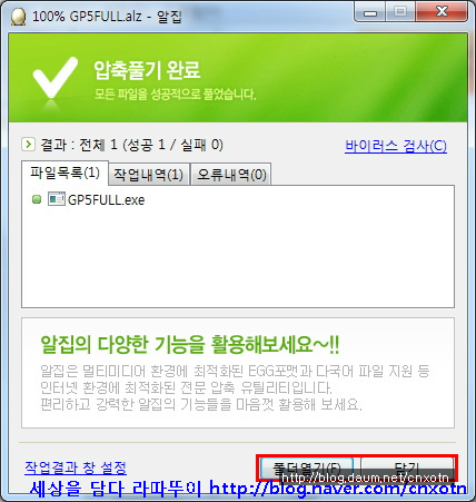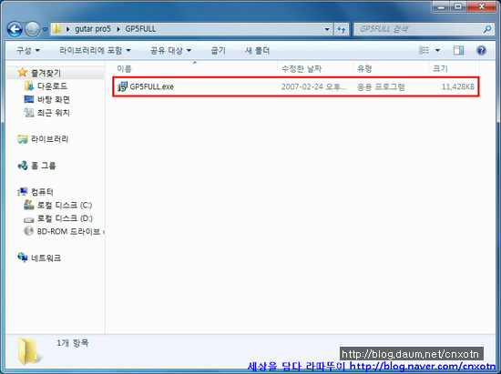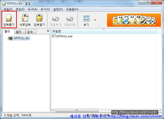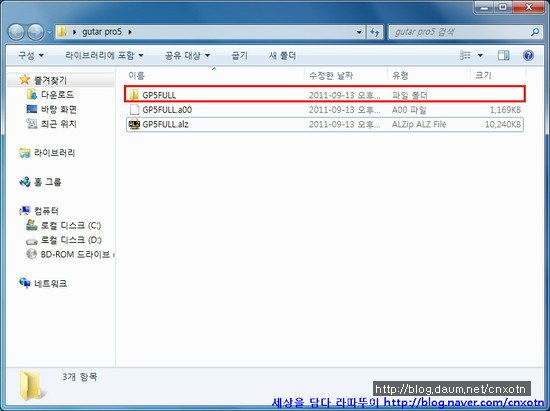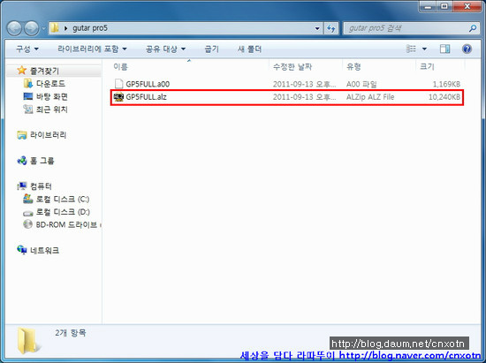 1.일단 제가 올린 파일을 같은 위치에 다운로드하시고 GP5FULL.alz 파일을 실행합니다~!!