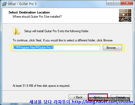 9. 이제 설치할곳을 Browse....로 선택할수있습니다~!! 기본적으로 프로그램이 설치되는