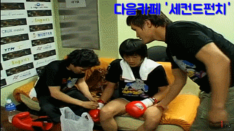 대기실에서 몸을 풀다가 수줍게 인터뷰를 하는 대학생 정찬성