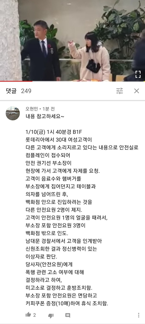 진상녀가 앉은 자리가 롯데리아 자리가 아니라서 안내요원이 자리 이동을 요청했다는 이유라고 하네요.....