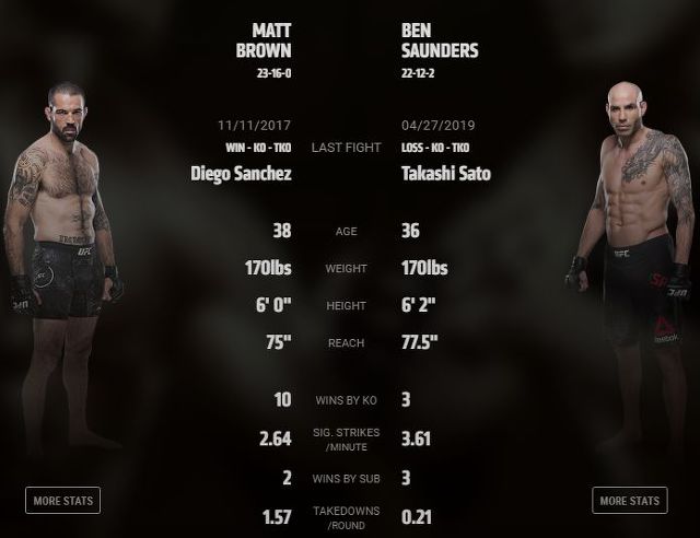 두 선수 모두 최근에 연달아 KO를 당하며 좋지 않은 상황인데, 그나마 맷 브라운은 연패를 끊어내며 분위기가 올라왔다는게 다른 점이겠네요.